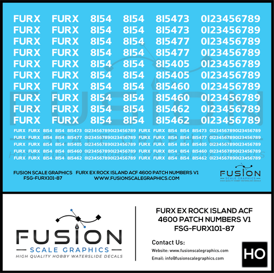 HO Scale FURX Ex Rock Island Acf 4600 Patch Numbers V1 Decal Set