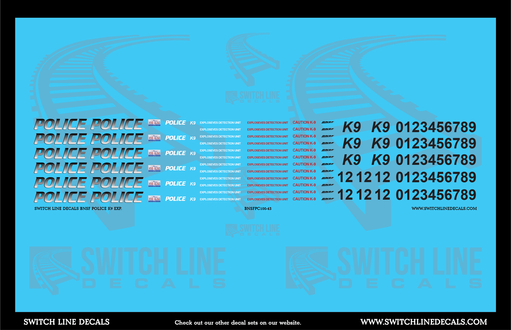 1:43 Scale BNSF Police K9 EXP. Decal Set