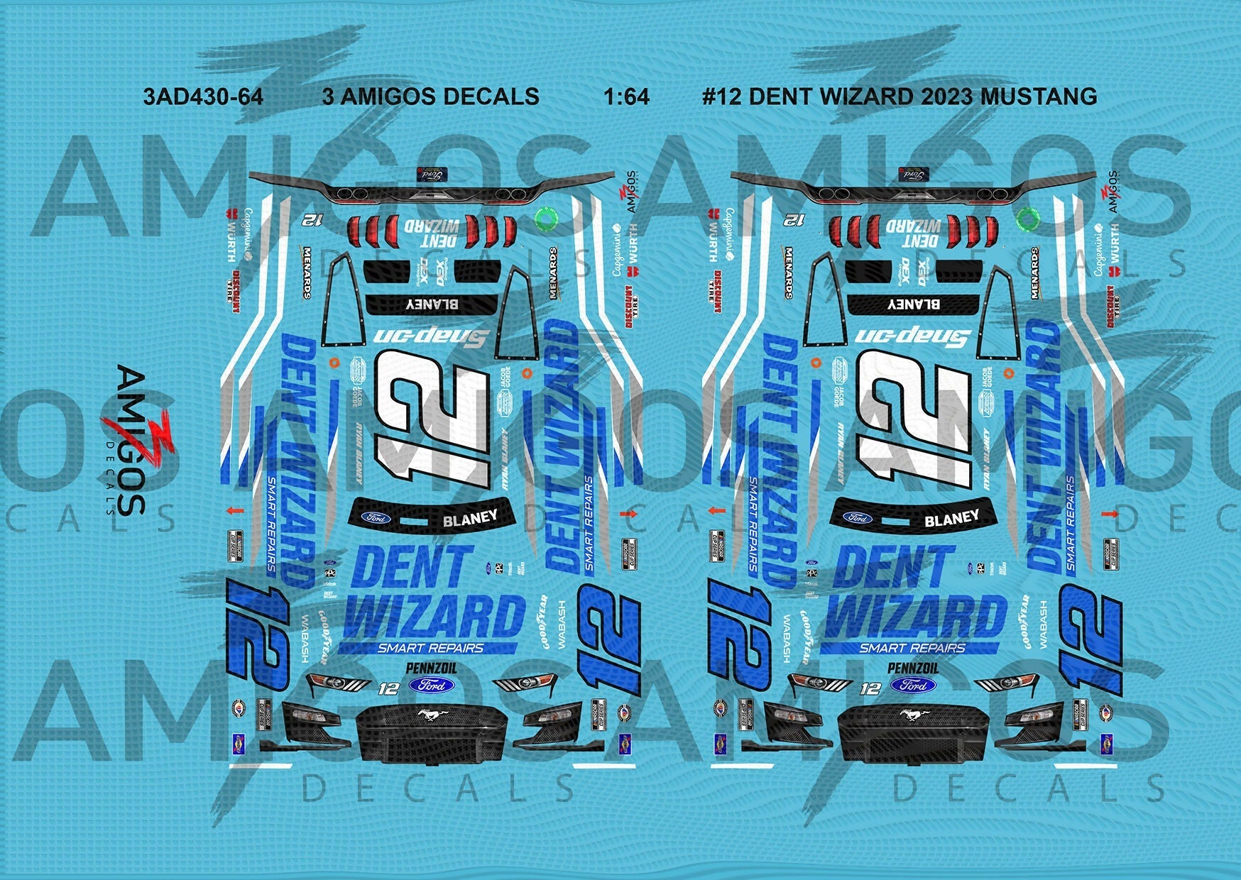 1:64 3 Amigos Decals #12 DENT WIZARD 2023 MUSTANG Decal Set