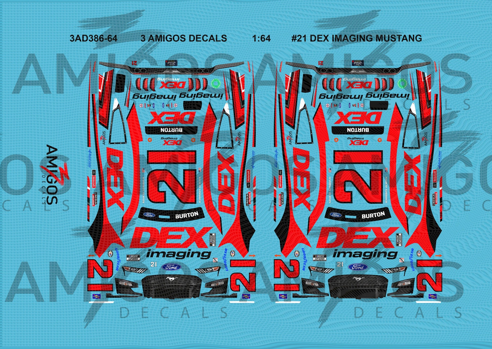 1:64 3 Amigos Decals #21 DEX IMAGING 2023 MUSTANG Decal Set