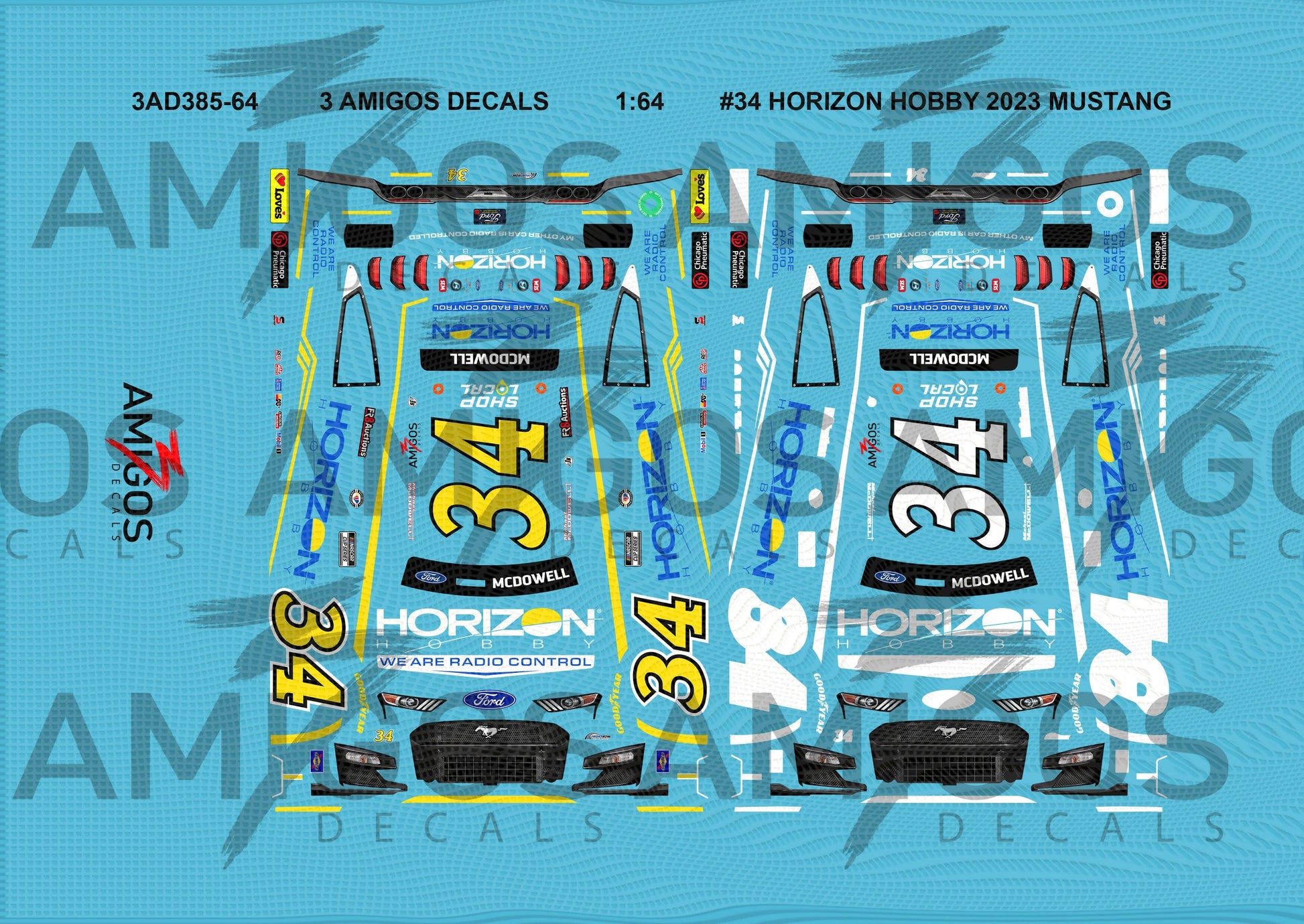 1:64 3 Amigos Decals #34 HORIZON HOBBY 2023 MUSTANG Decal Set