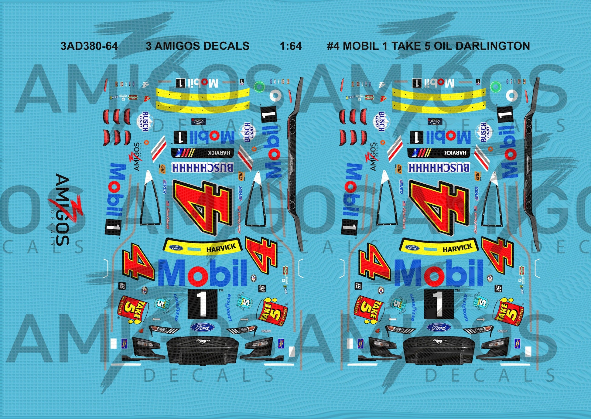 1:64 3 Amigos Decals #4 MOBIL 1 TAKE 5 OIL DARLINGTON Decal Set