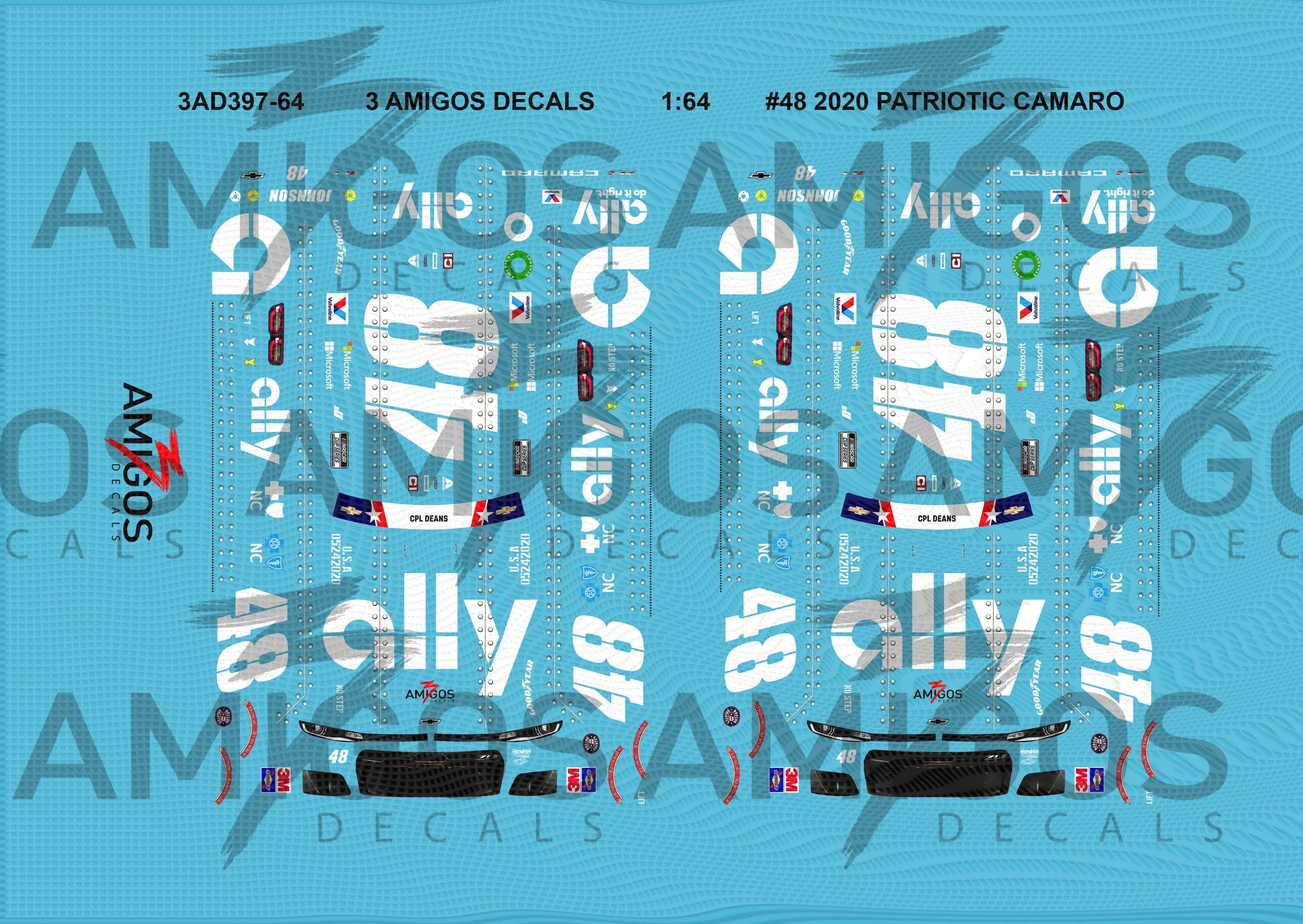 1:64 3 Amigos Decals #48 2020 PATRIOTIC CAMARO Decal Set
