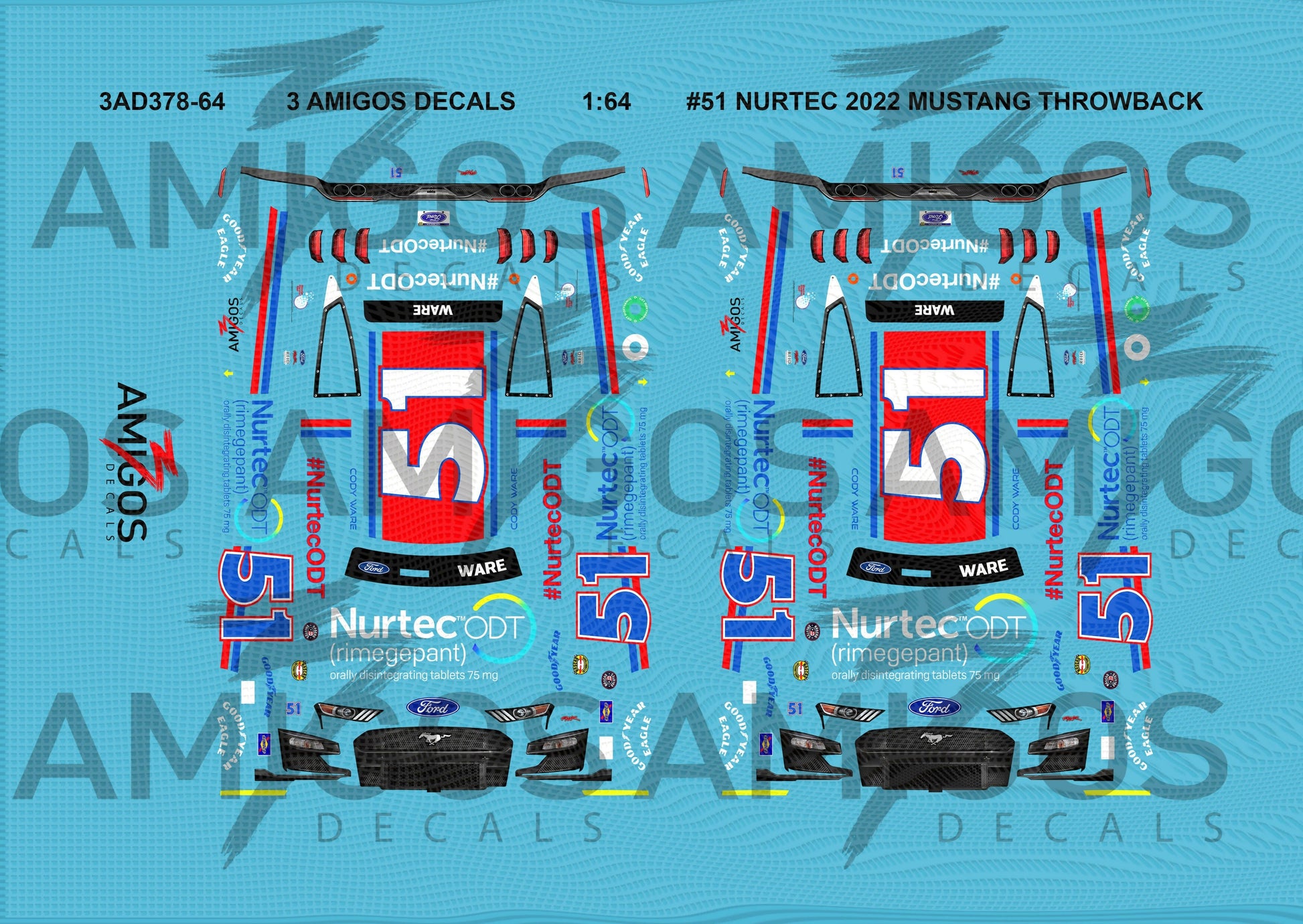1:64 3 Amigos Decals #51 NURTEC 2022 MUSTANG Decal Set