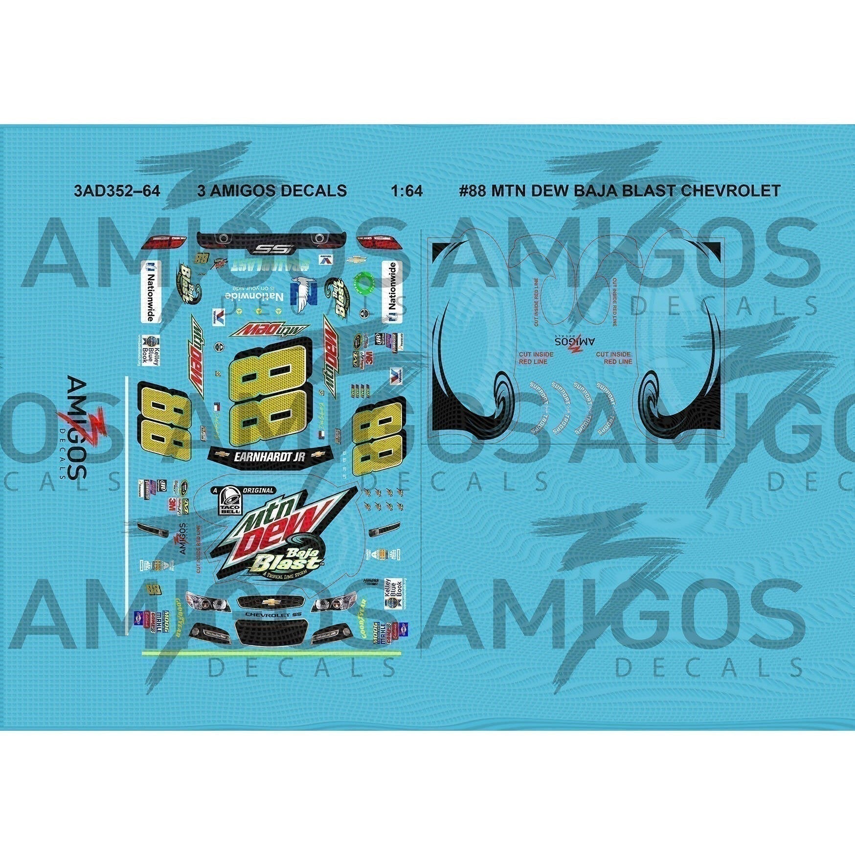 1:64 3 Amigos Decals #88 MTN DEW BAJA BLAST CHEVROLET SS CAMRY Decal Set