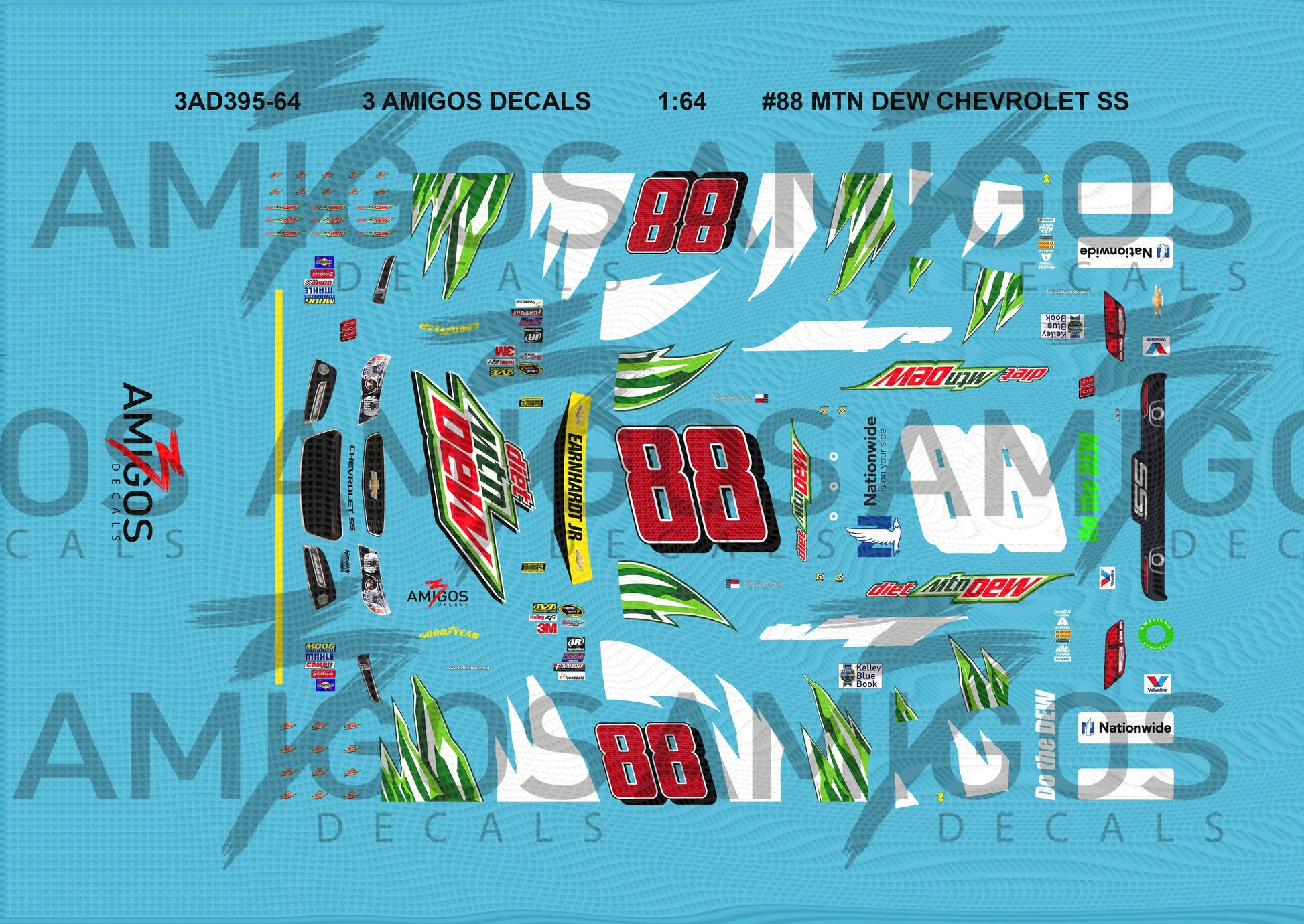 1:64 3 Amigos Decals #88 MTN DEW CHEVROLET SS Decal Set