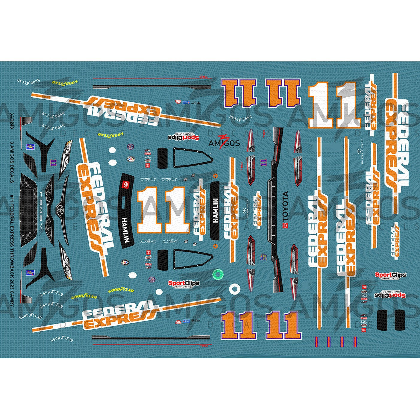 3 Amigos Decals #11 FEDERAL EXPRESS THROWBACK 2023 CAMRY Decal Set 1:24