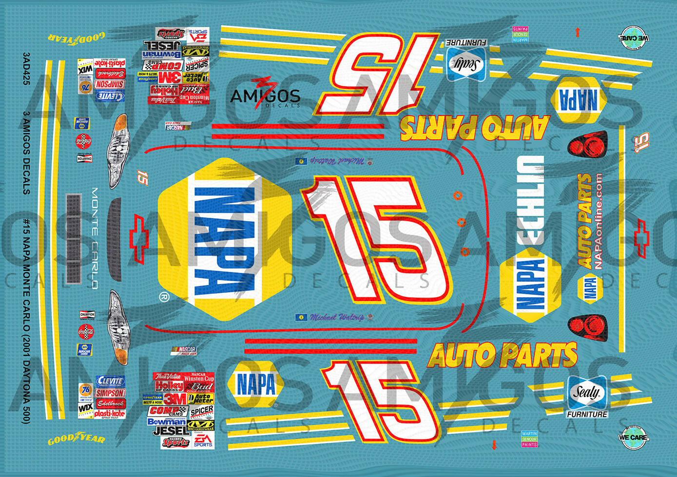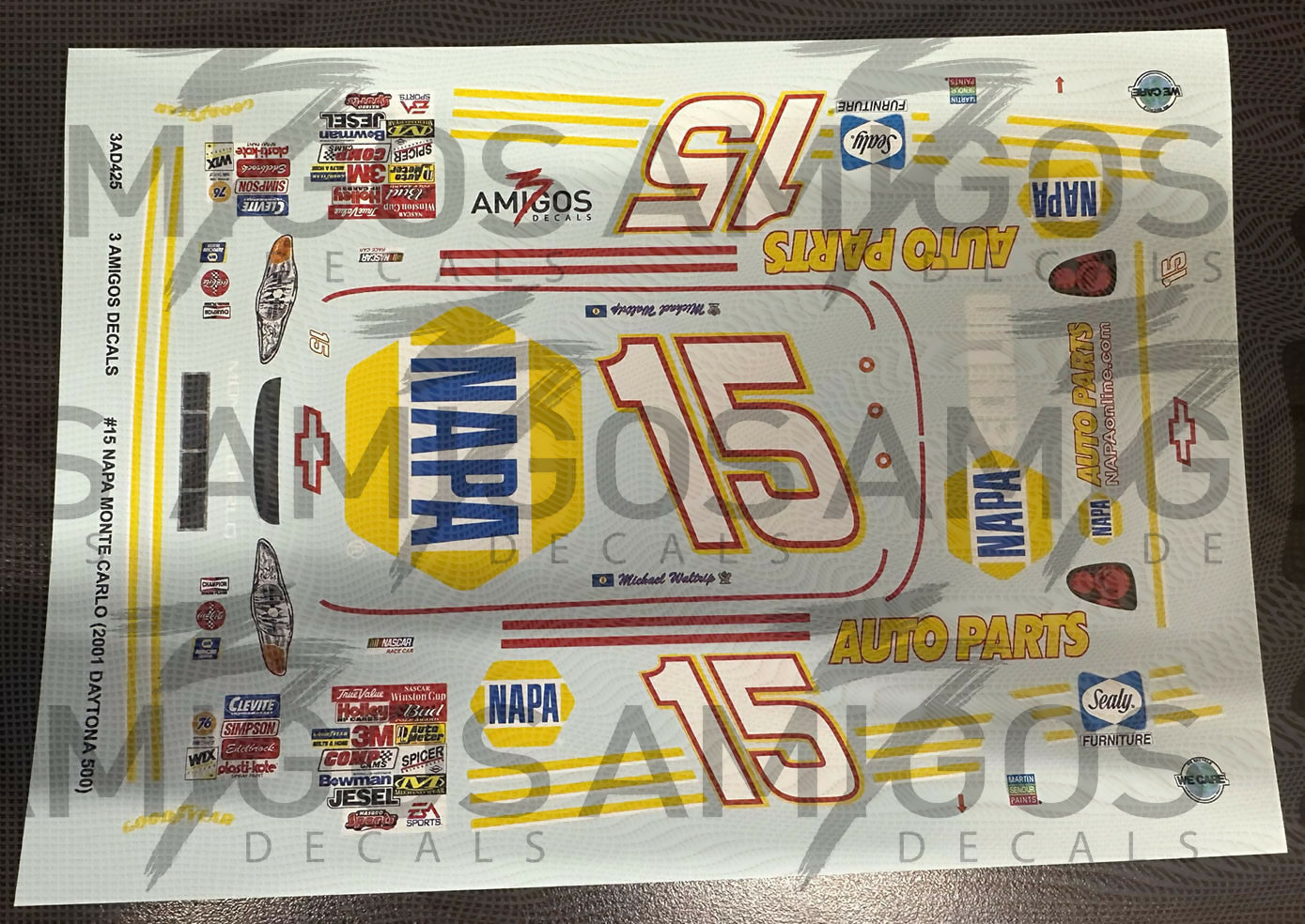 3 Amigos Decals #15 NAPA MONTE CARLO (2001 DAYTONA 500 WINNER) Decal Set 1:24