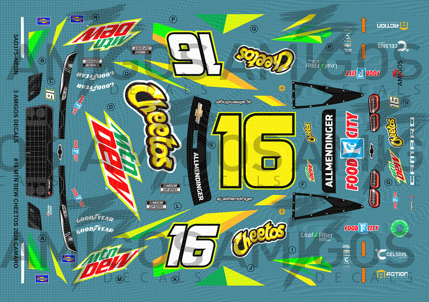 3 Amigos Decals #16 MTN DEW/CHEETOS 2024 MONTE CARLO Decal Set 1:24