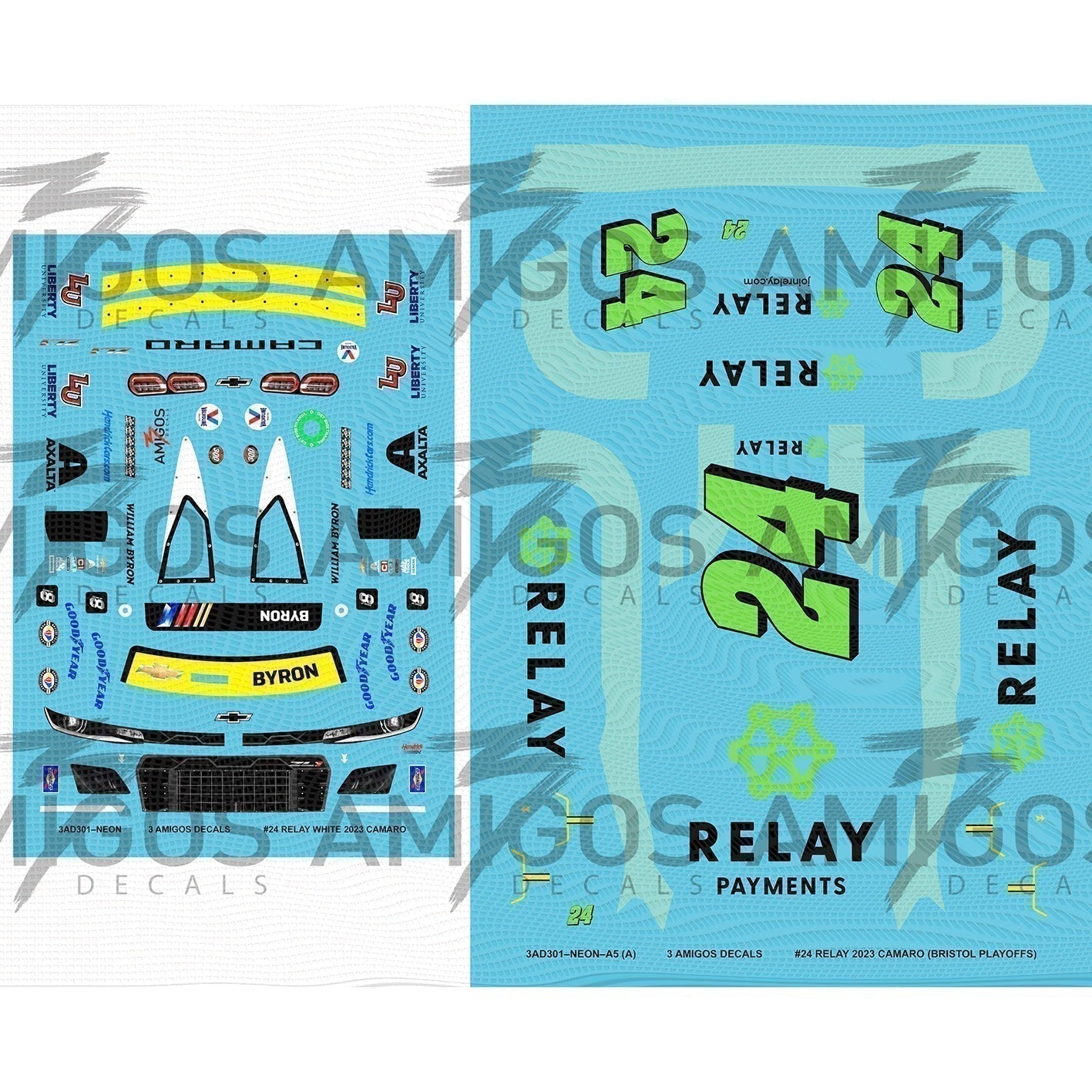 3 Amigos Decals #24 RELAY WHITE VERSION 2023 Camaro Las Vegas playoffs Decal Set 1:24