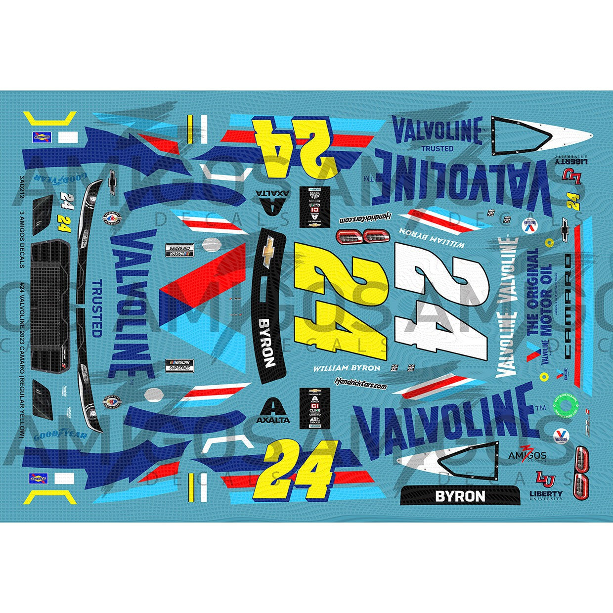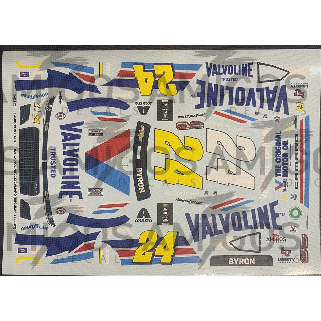 3 Amigos Decals #24 Valvoline STANDARD YELLOW 2023 Camaro Decal Set 1:24