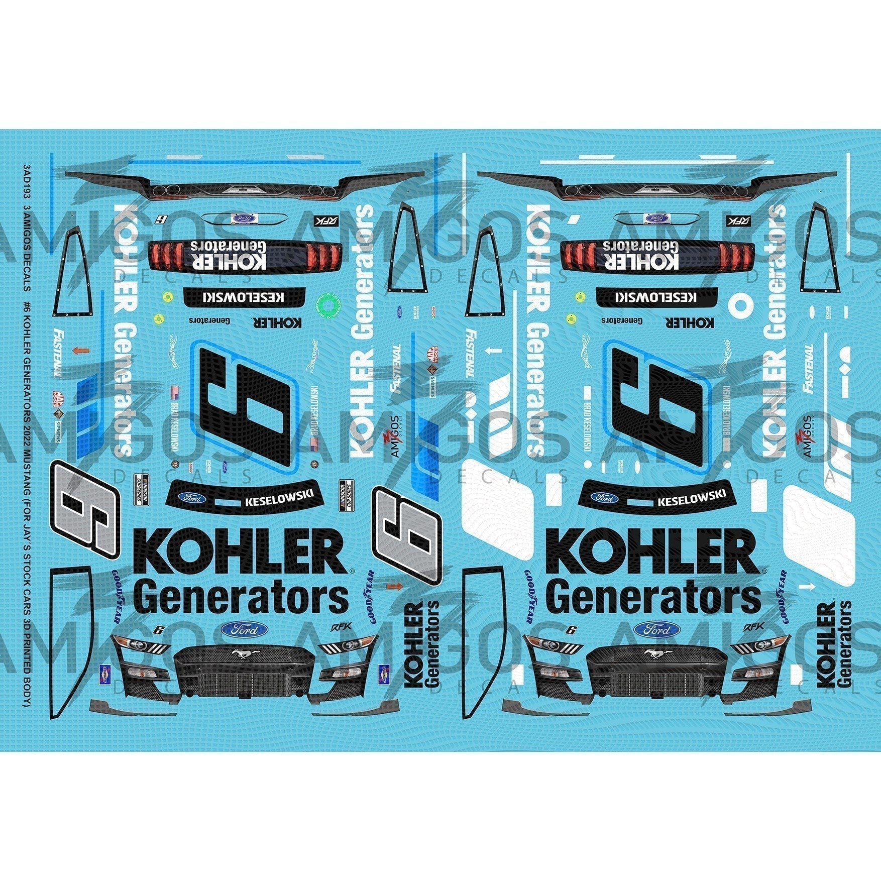 3 Amigos Decals #6 KOHLER GENERATORS 1:24 2022 MUSTANG WITH CHROME (For Jay´s Stock Cars 1:24 2022 Mustang 3D printed body)