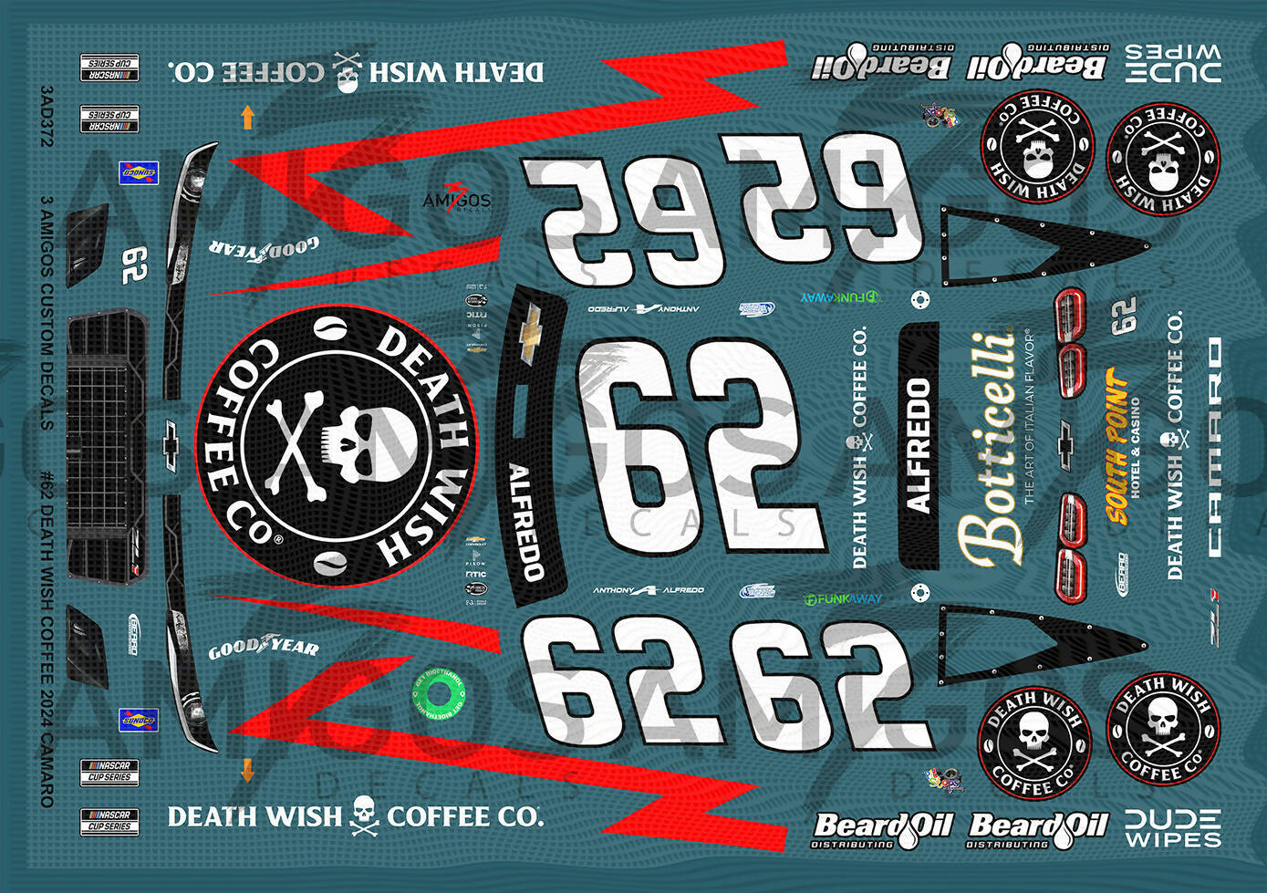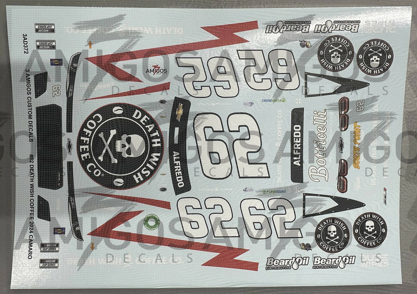 3 Amigos Decals #62 DEATH WISH COFFEE 2024 CAMARO Decal Set 1:24