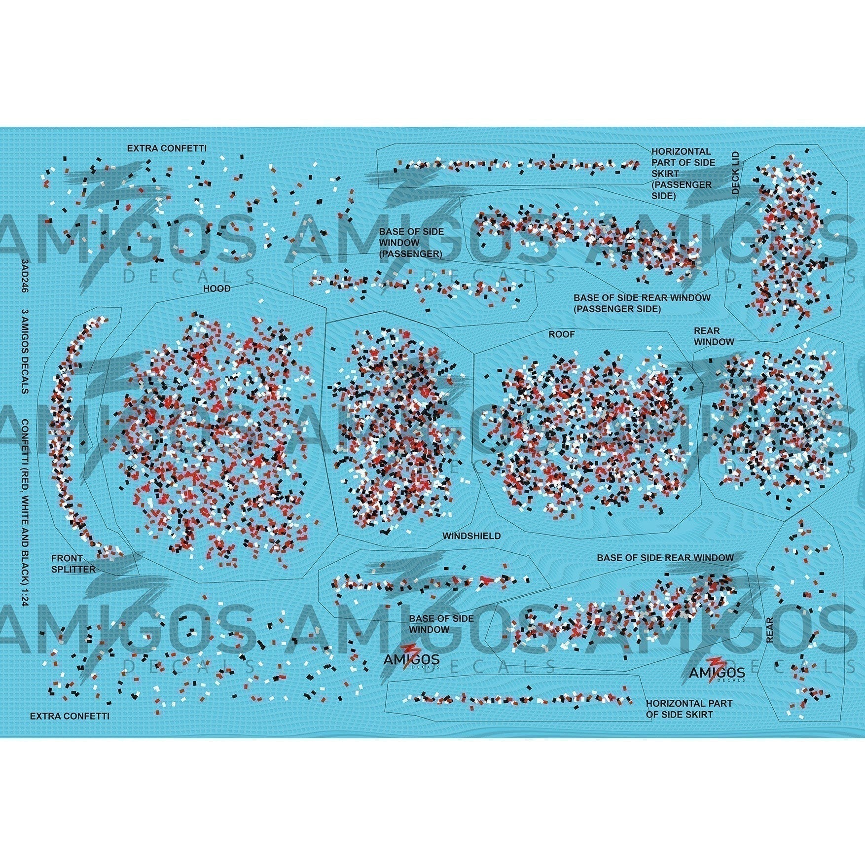 3 Amigos Decals CONFETTI RED WHITE AND BLACK Decal Set 1:24