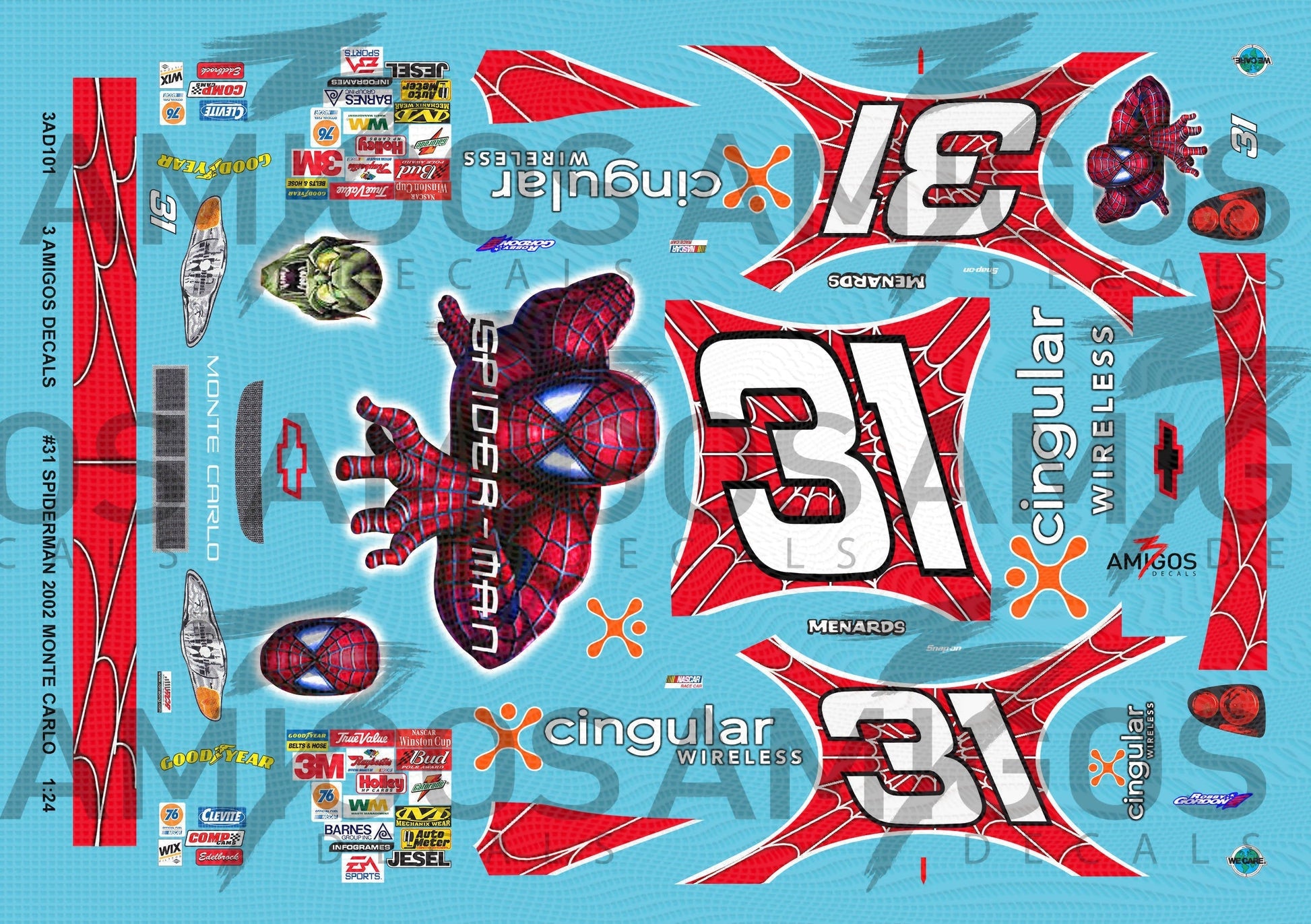 3 Amigos Decals Spiderman #31 2002 Monte Carlo Racecar Decal Set 1:24