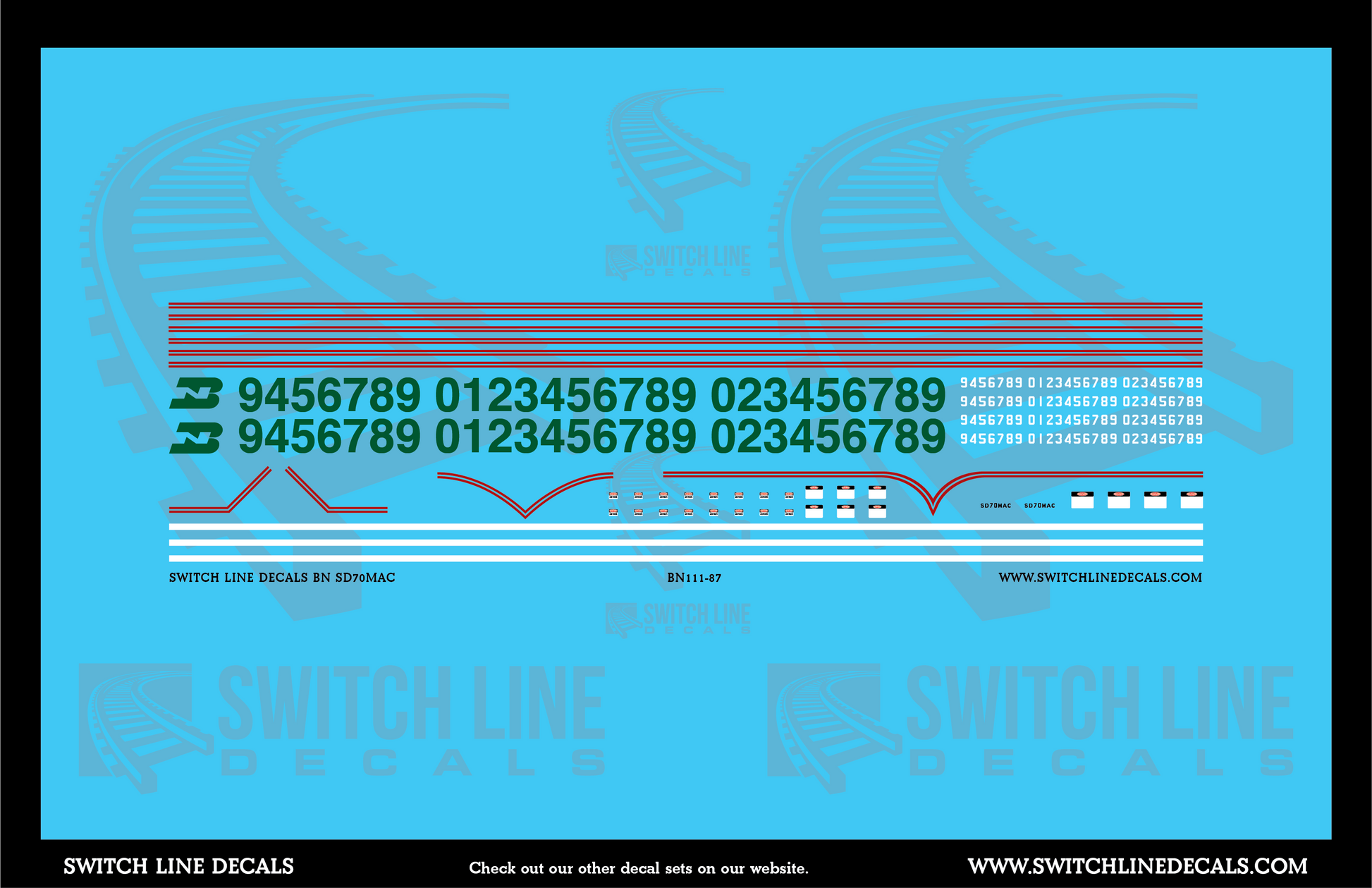 Ho Scale Burlington Northern SD70MAC Locomotive Decal Set