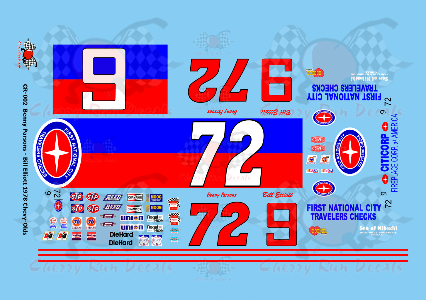 Cherry Run Decals Benny Parsons - Bill Elliott 1978 Chevy - Oldsmobile 1:24 Decal Set