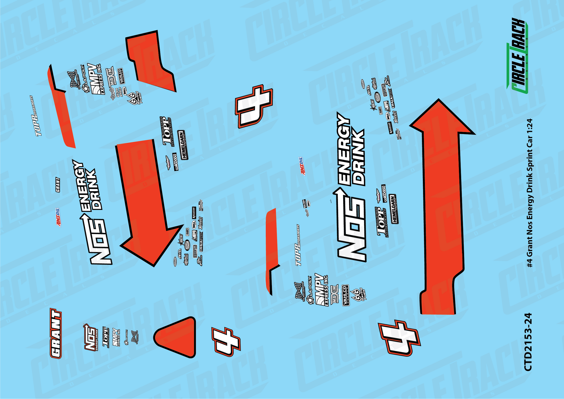 Circle Track Decals #4 Grant Nos Energy Drink Sprint Car 1:24 Decal Set