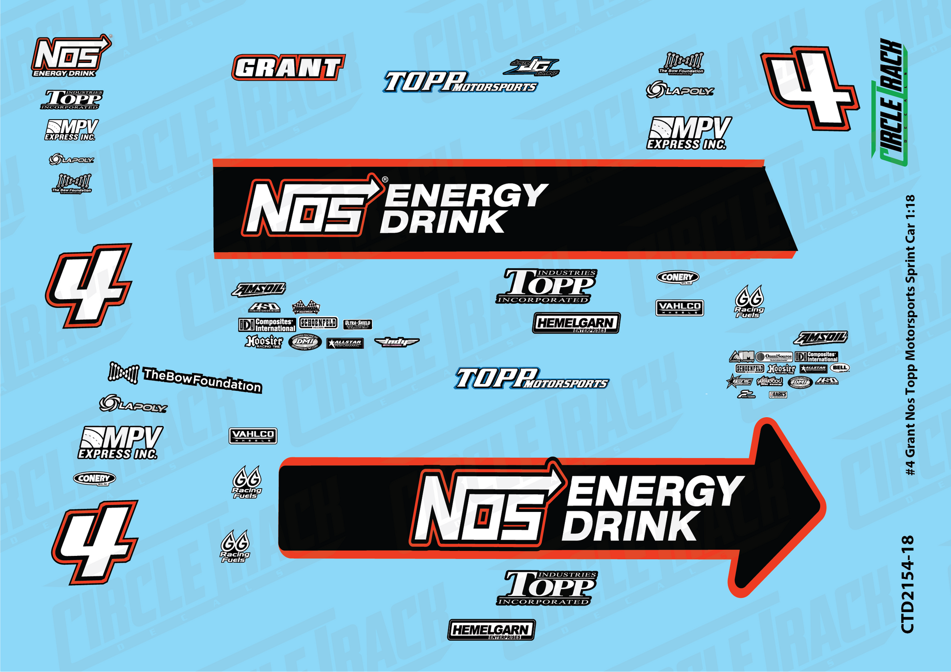 Circle Track Decals #4 Grant Nos Topp Motorsports Sprint Car 1:18 Decal Set