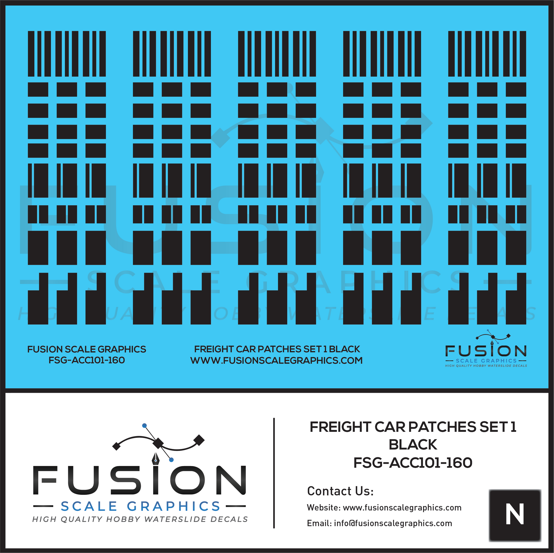 N Scale Freight Car Patches Set 1 Black Decal Set