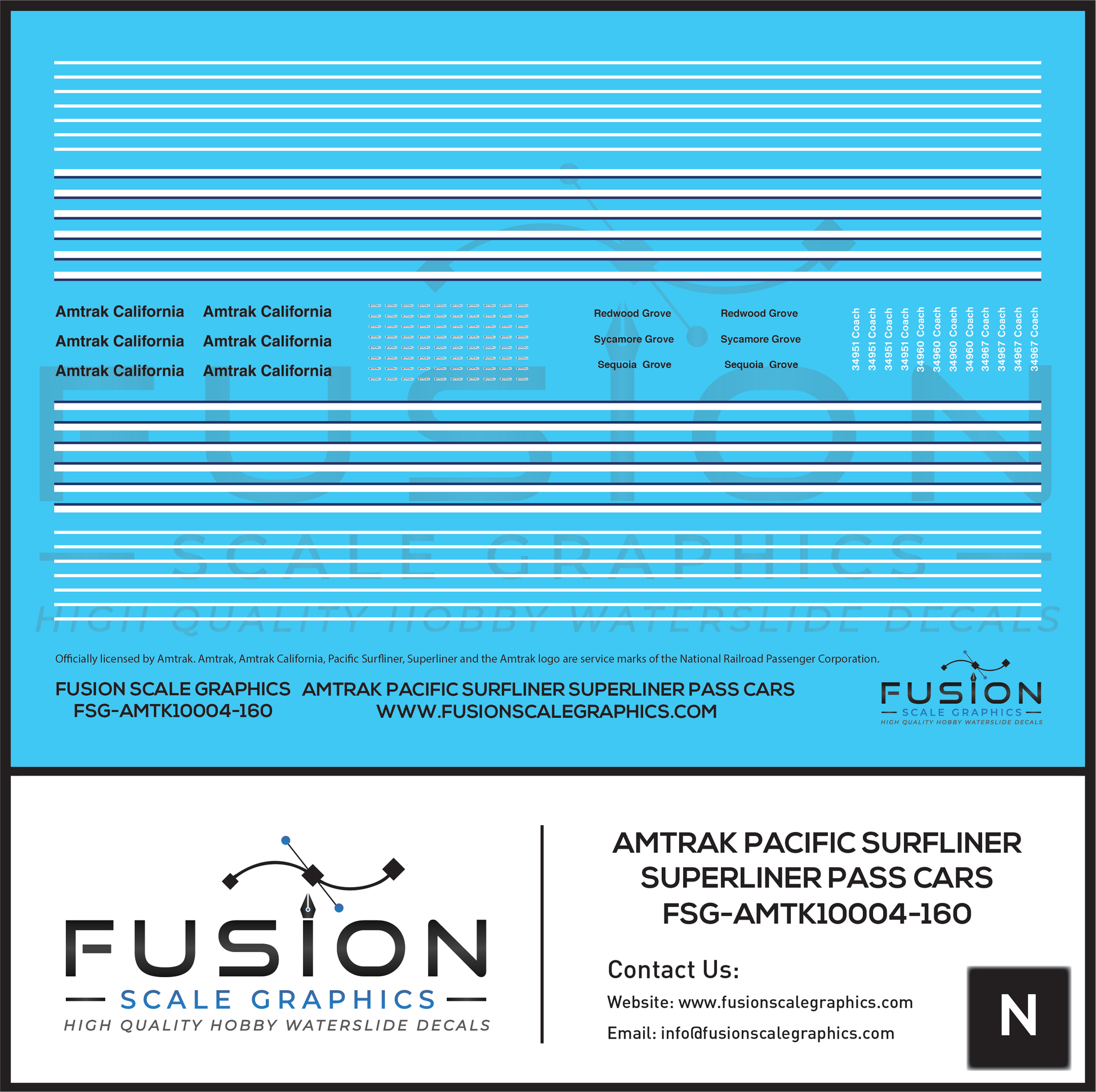 N Scale Amtrak Pacific Surfliner Superliner Passenger Cars Decal Set