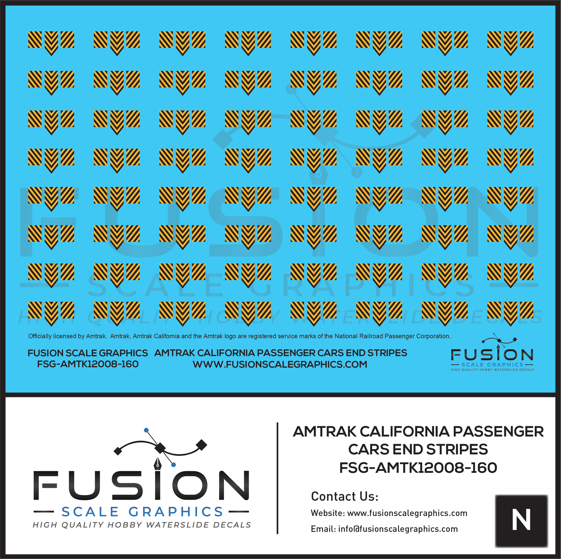 N Scale Amtrak California Passenger Car End CabCar Stripes Yellow Striping Decal Set