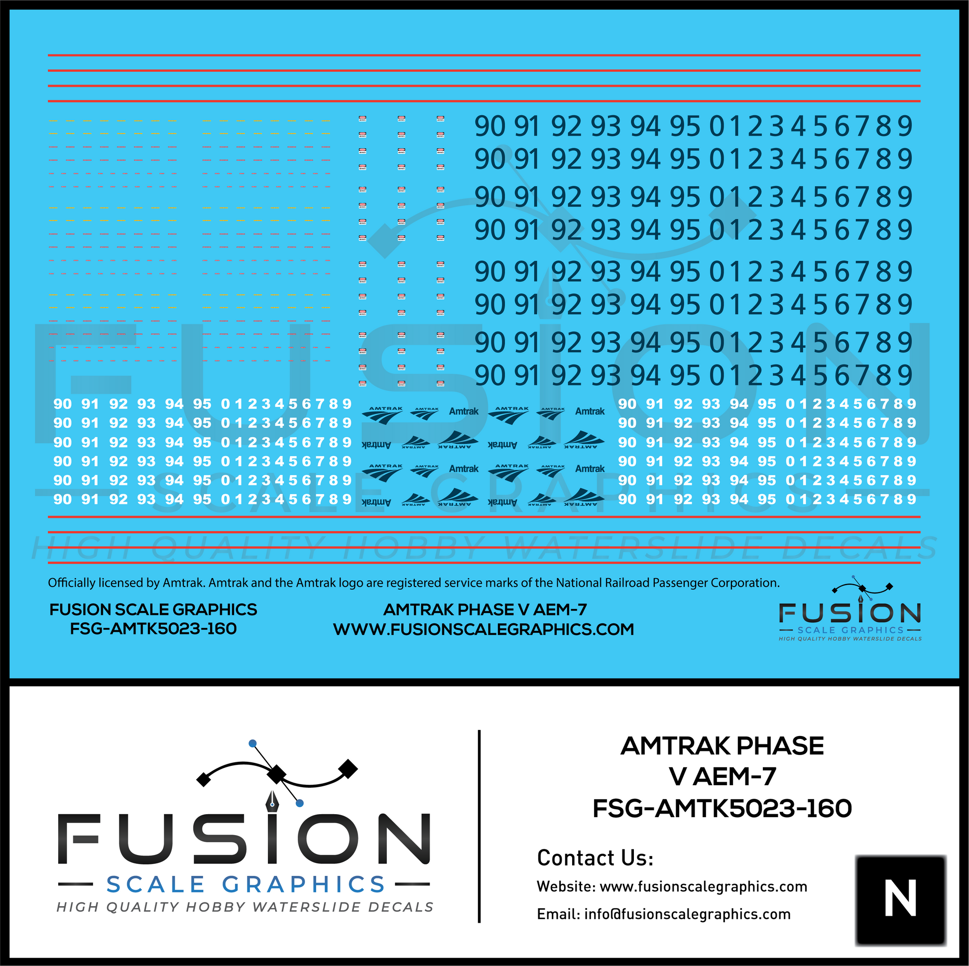 N Scale Amtrak Phase V AEM-7 Locomotive Decal Set