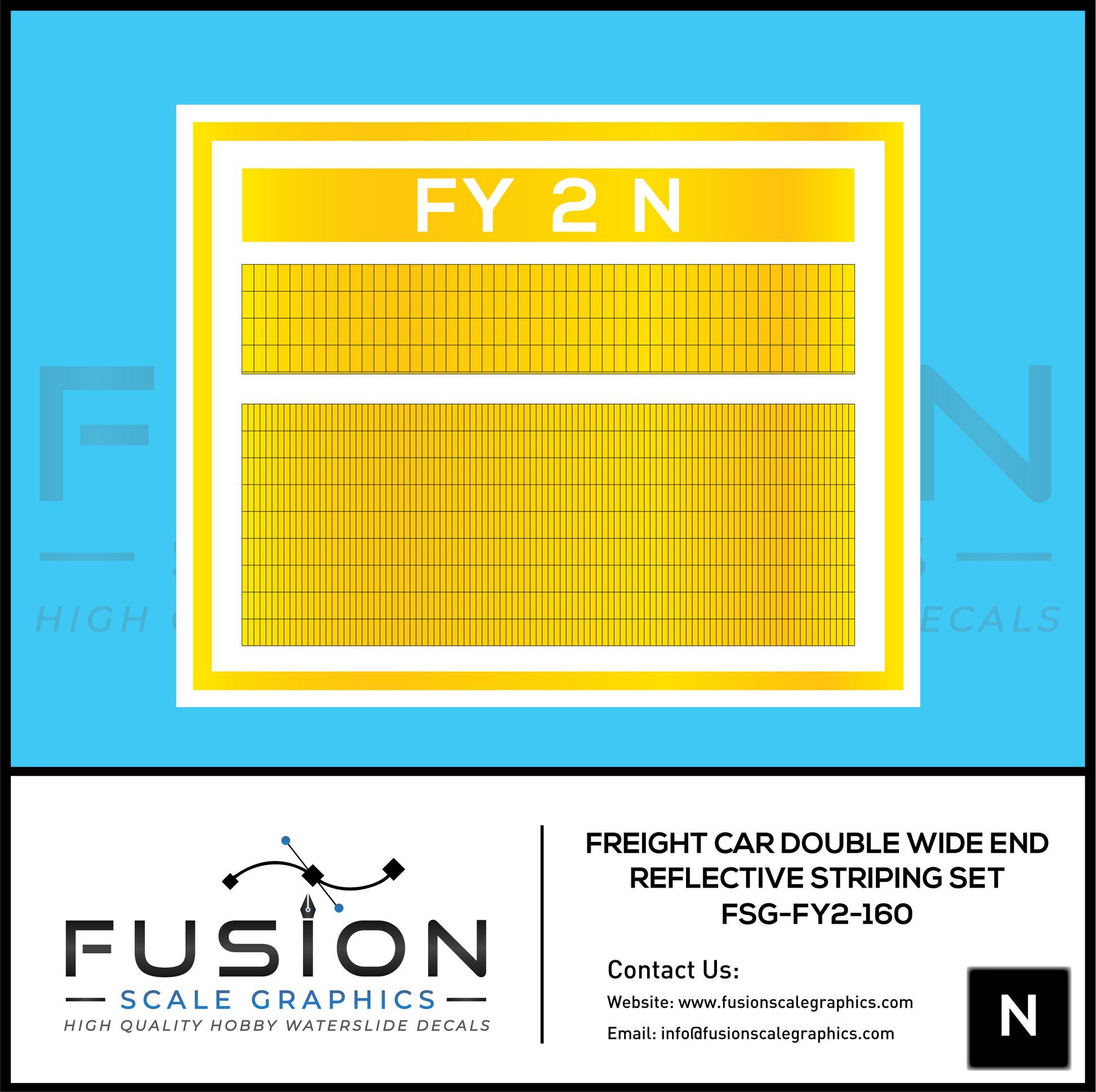 N Scale Railroad Freight Car Yellow Reflective Markings Set W/ Double Width Stripes.