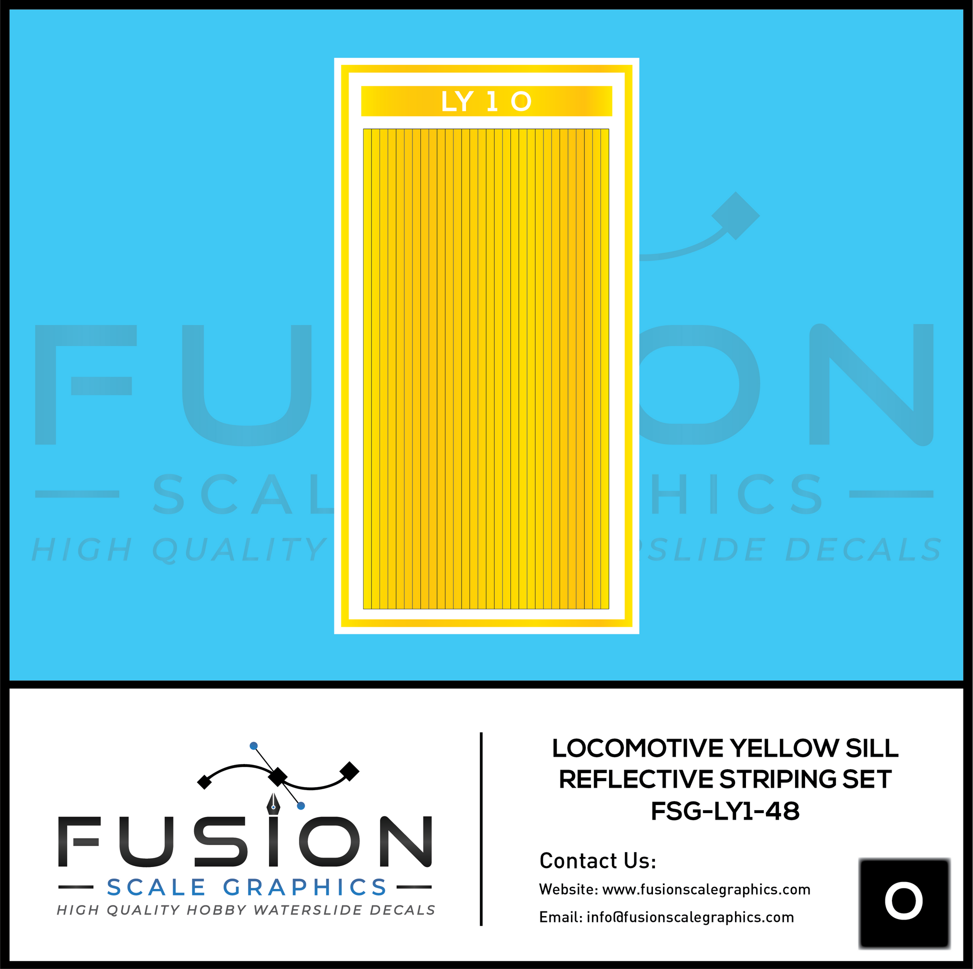 This set includes O scale yellow reflective sill striping found on Union Pacific, CSX locomotives as well as others.