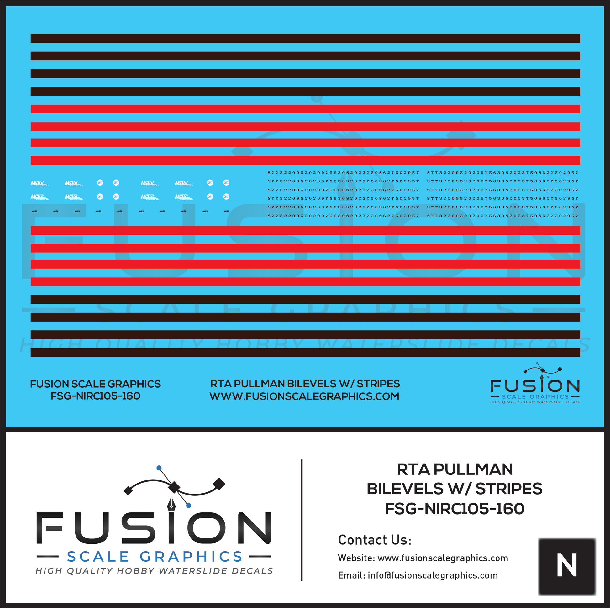 N Scale RTA Pullman BiLevel Cars Decal Set W/ Stripes