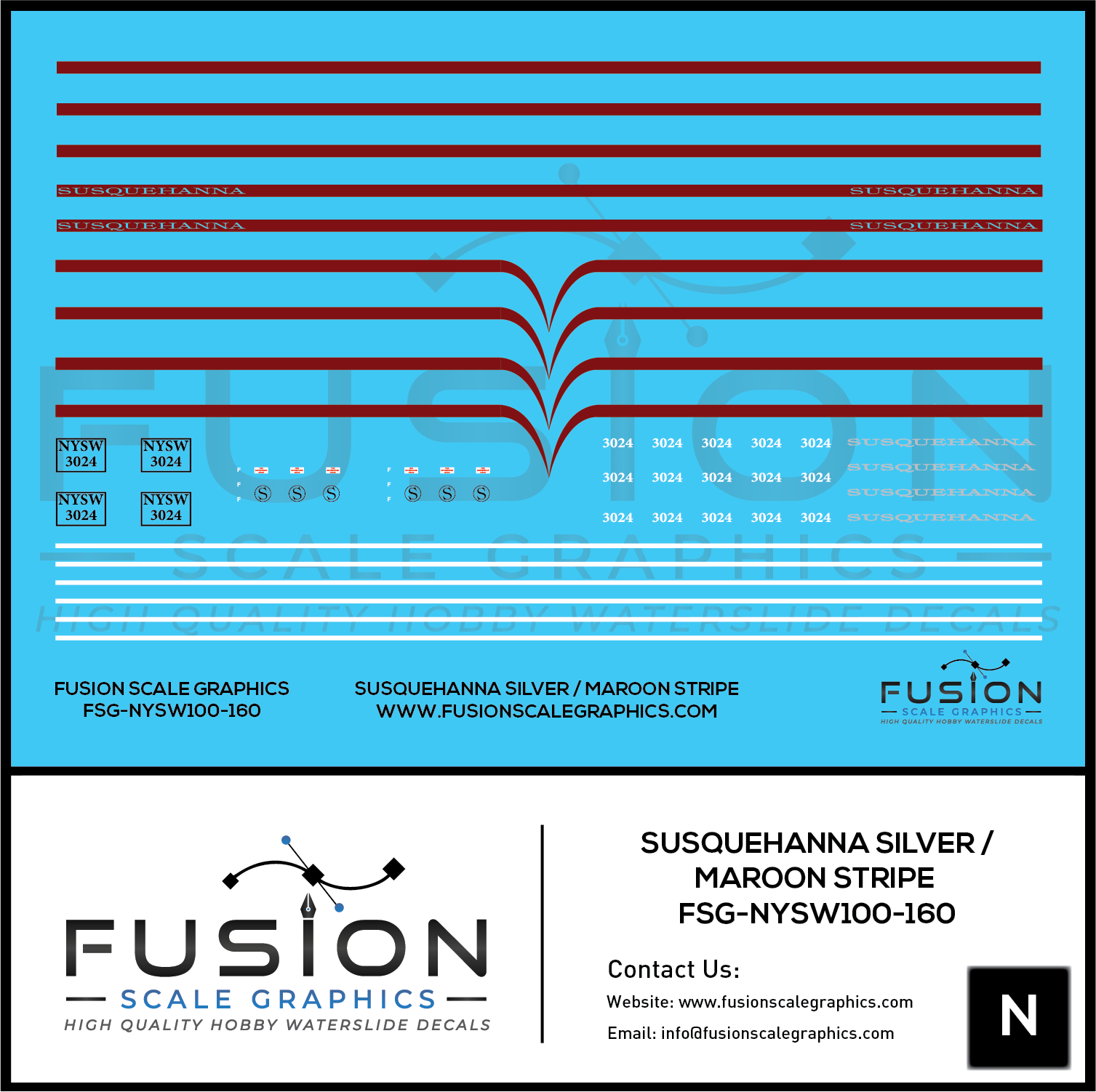 N Scale Susquehanna SD40-2 Silver w/ Maroon Stripe 3024 Decal Set
