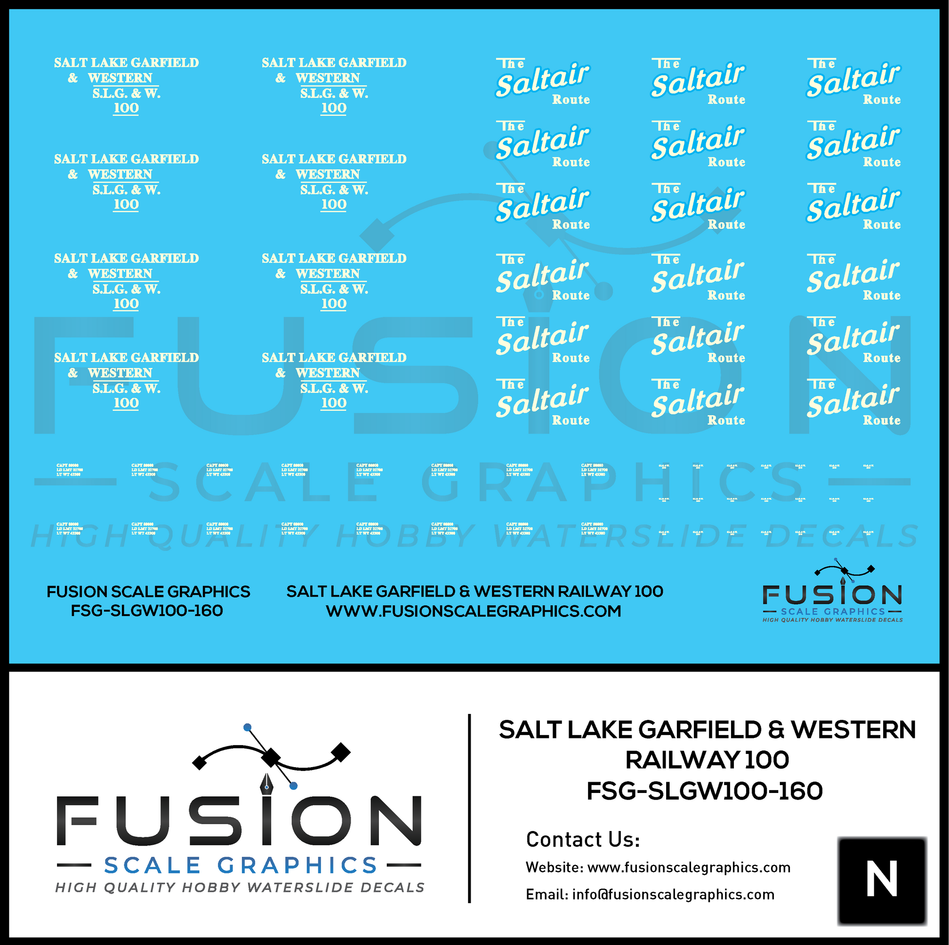 N Scale Salt Lake Garfield & Western Railway Boxcar 100 Decal Set.