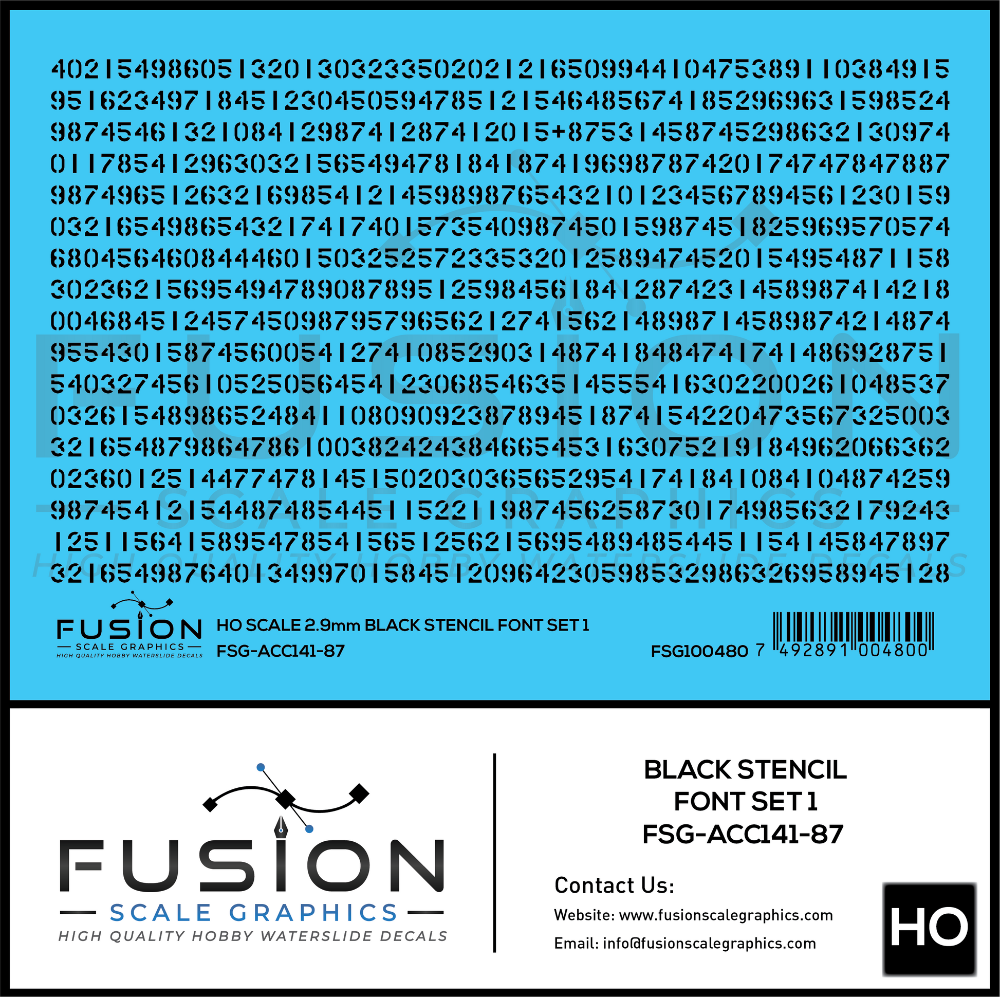 HO Scale Black Stencil Numbers Font 1 2.9mm Tall Decal Set