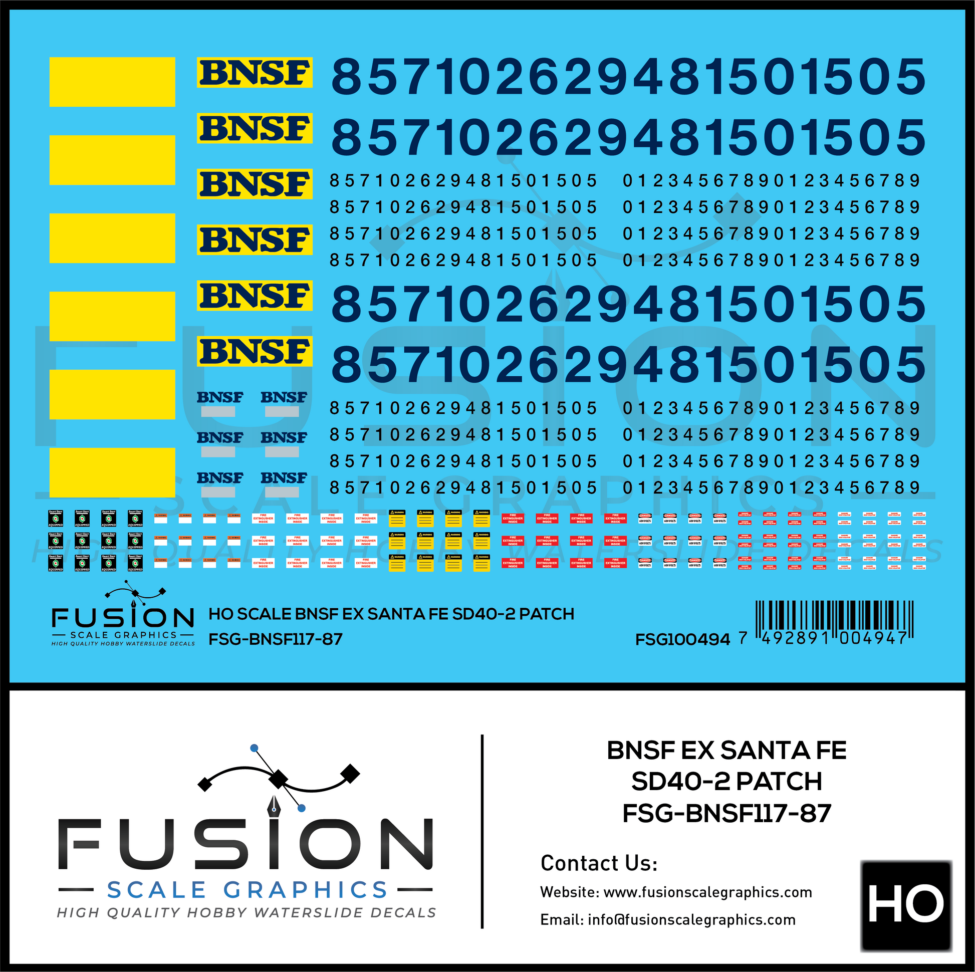 HO Scale BNSF Ex Santa Fe EMD SD40-2 Locomotive Patching Decal Set