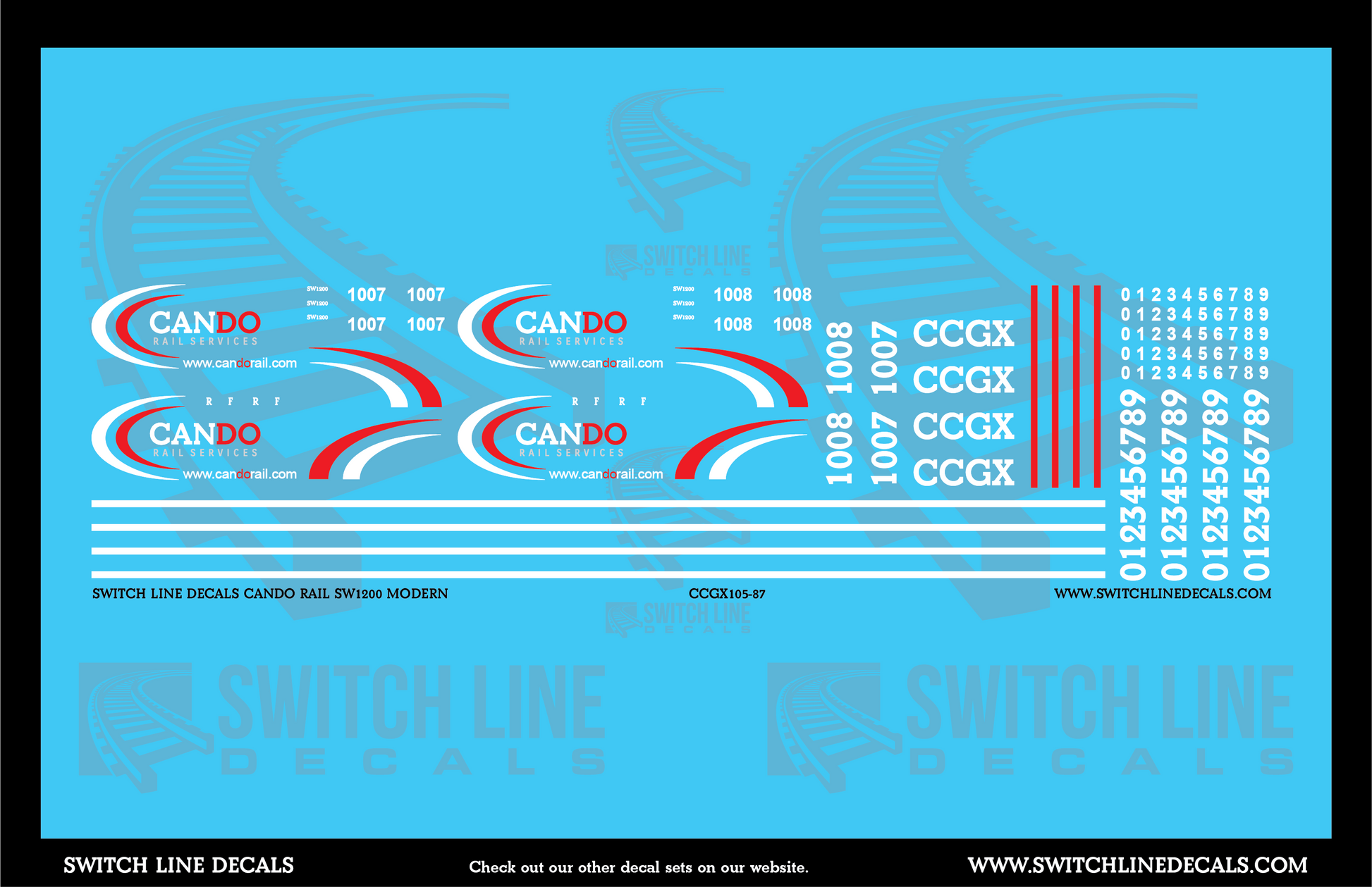 HO Scale Cando Rail SW1200 Modern Locomotive Decal Set