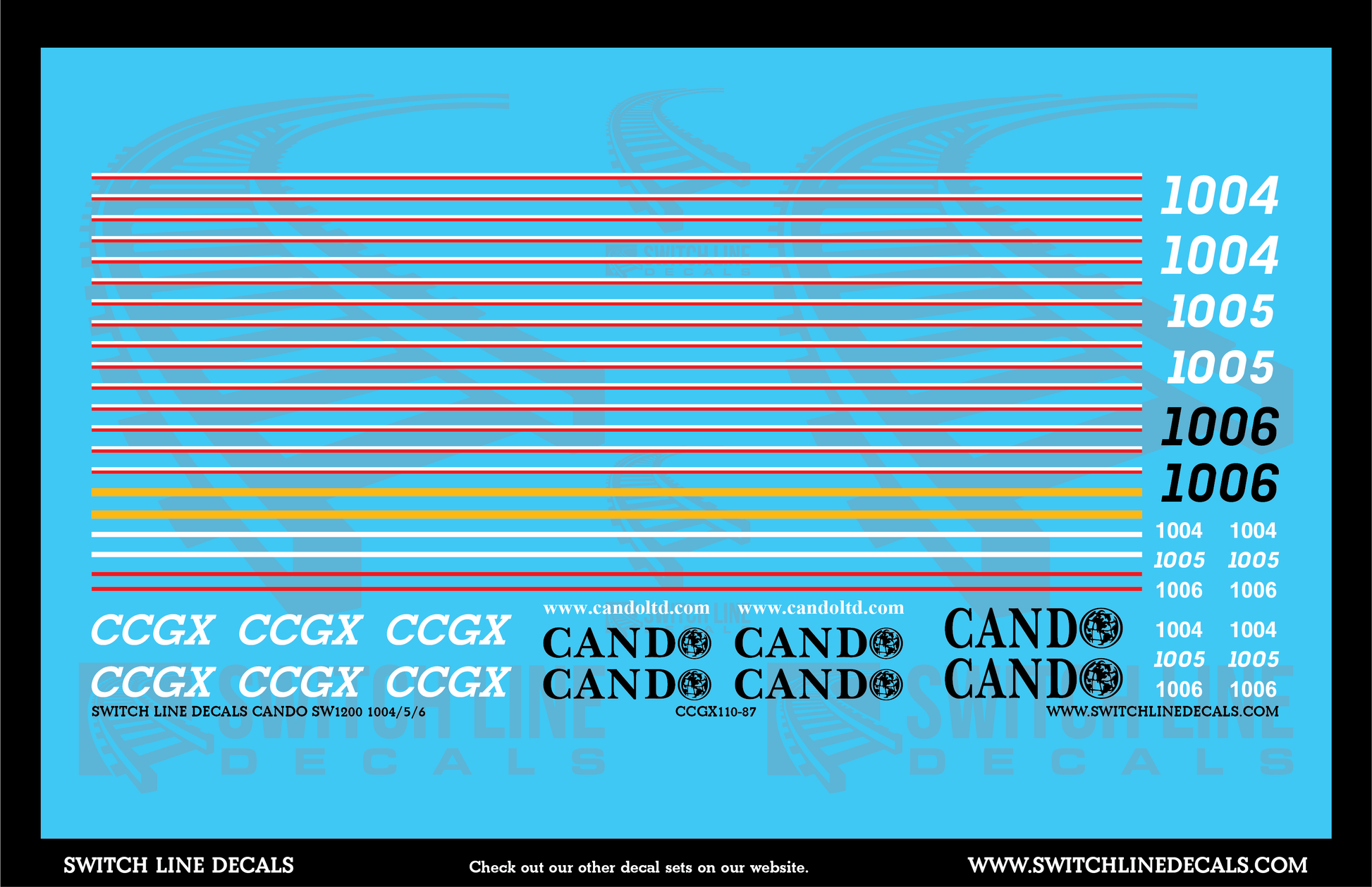 HO Scale Cando SW1200 1004/5/6 Locomotive Decal Set