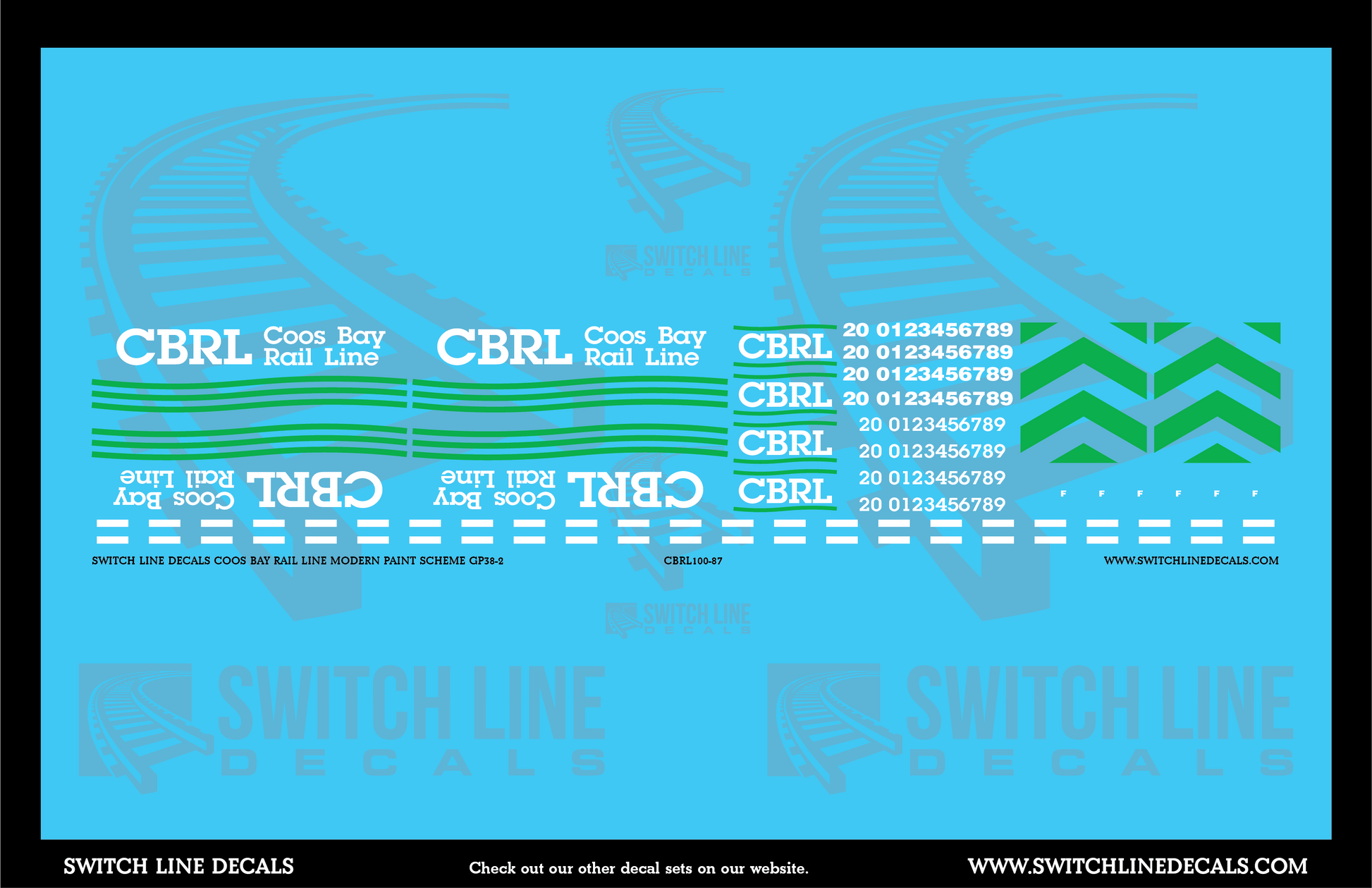 Coos Bay Rail Line Modern Paint Scheme GP38-2 Locomotive Decal Set