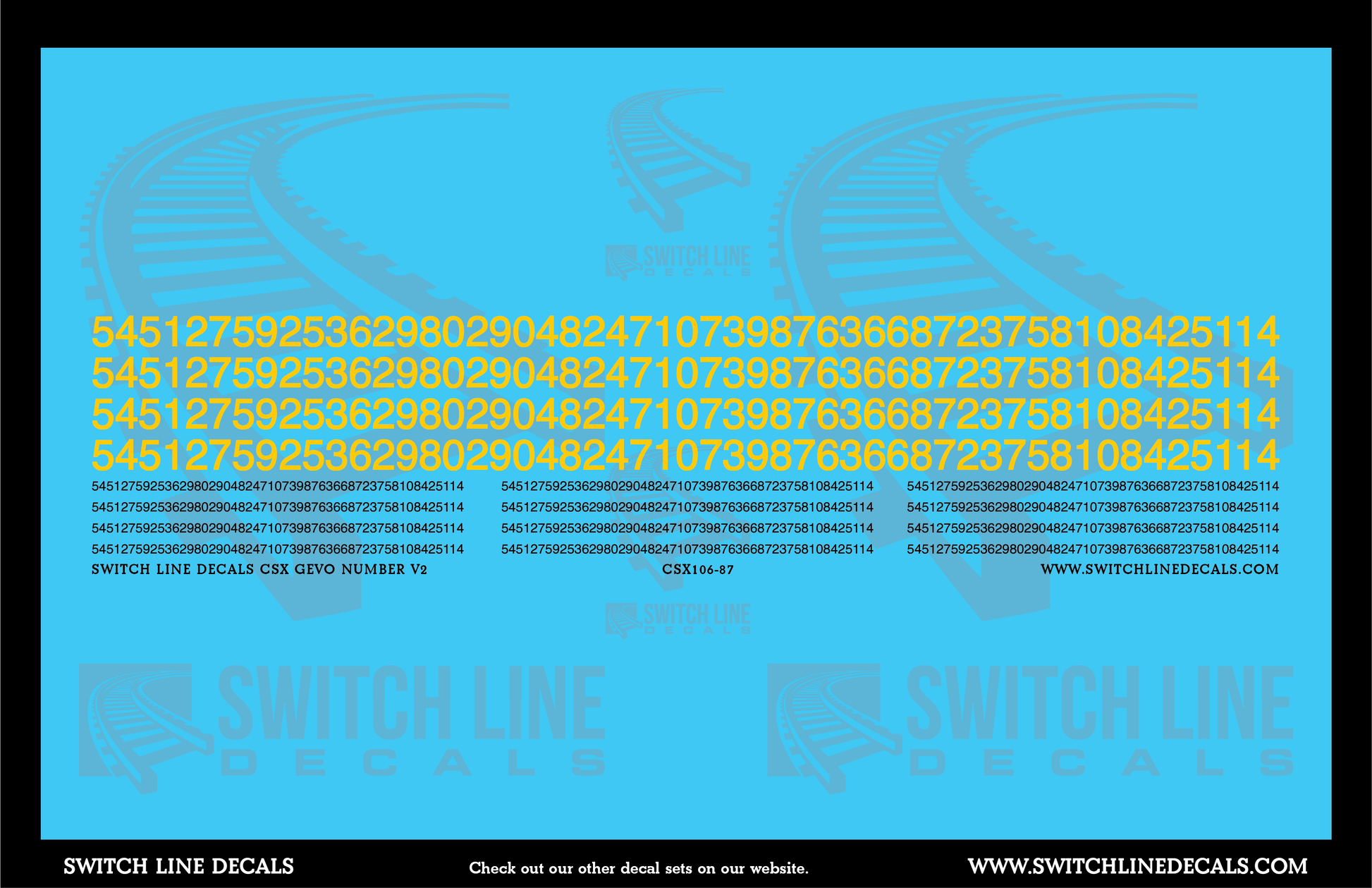 HO Scale CSX GEVO Numbers V2 Decal Set
