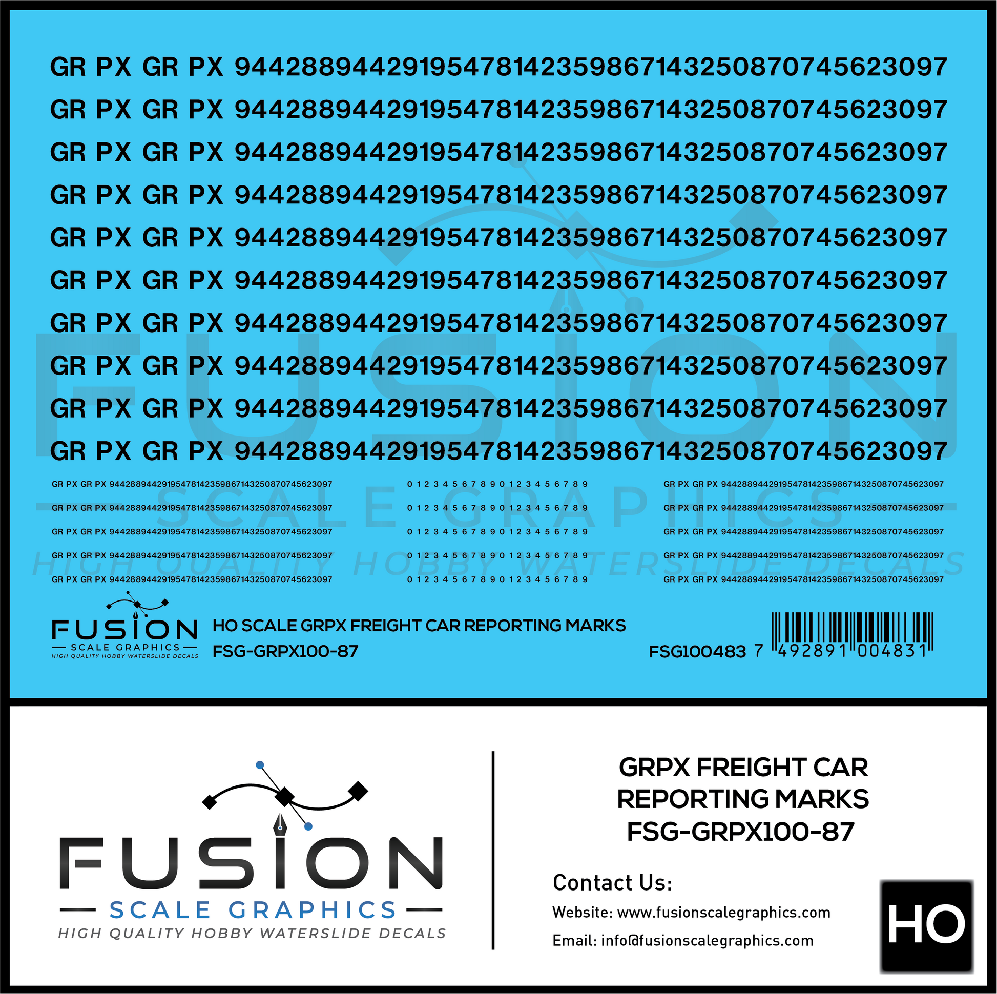 HO Scale GRPX Black Freight Car Reporting Marks Decal Set