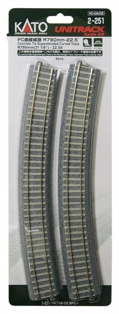 HO Scale Kato Unitrack 31 1/8" Curve 790MM concrete curve 4 pack