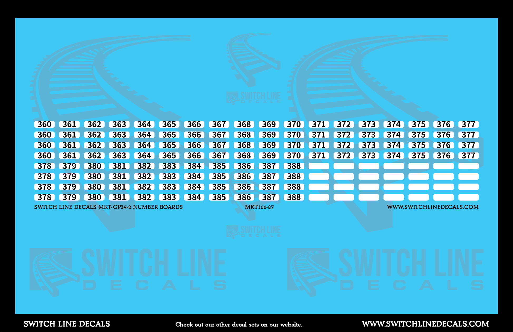 HO Scale MKT GP39-2 Number Boards Decal Set