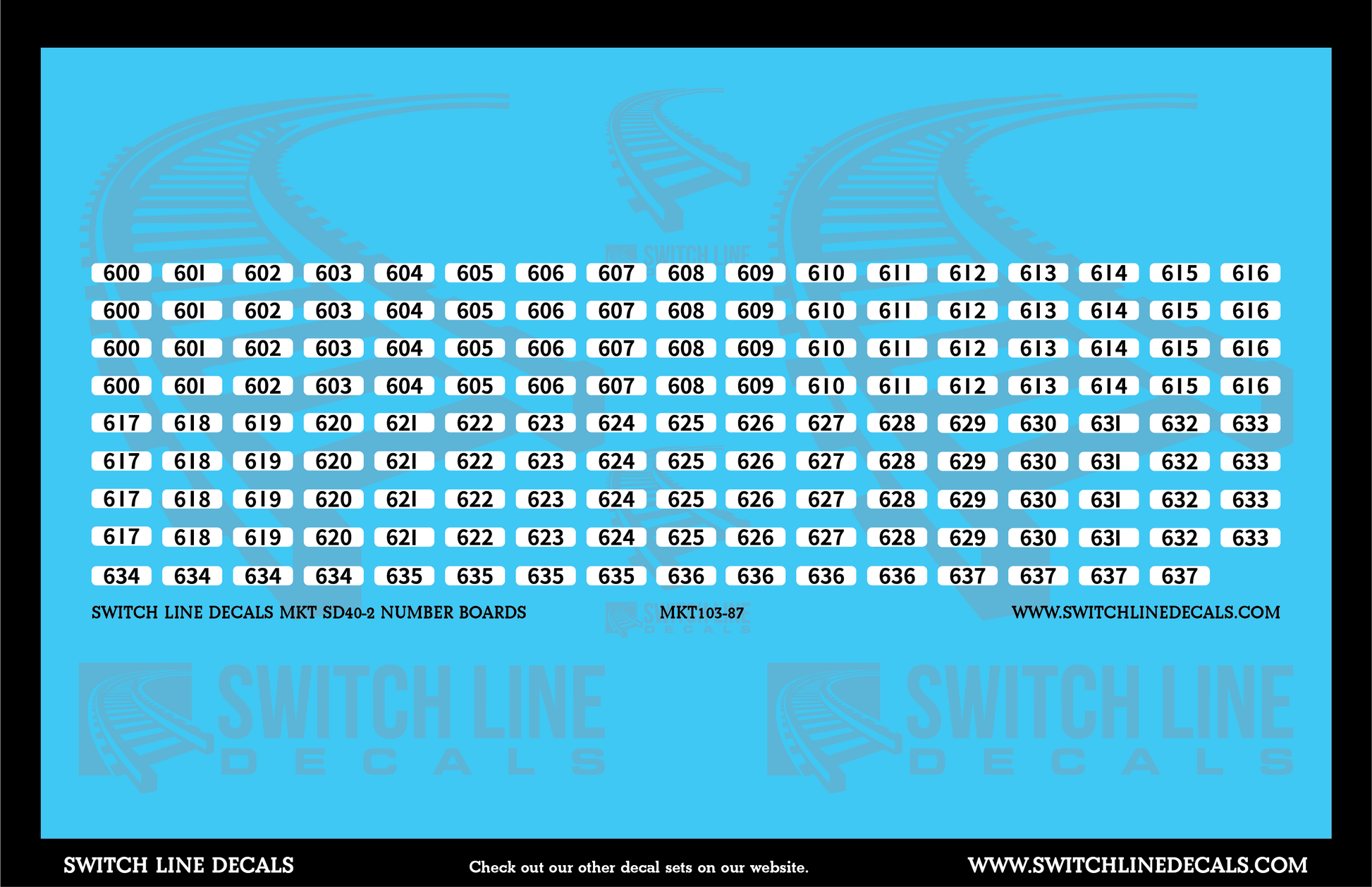 HO Scale MKT SD40-2 Number Boards V1 Decal Set