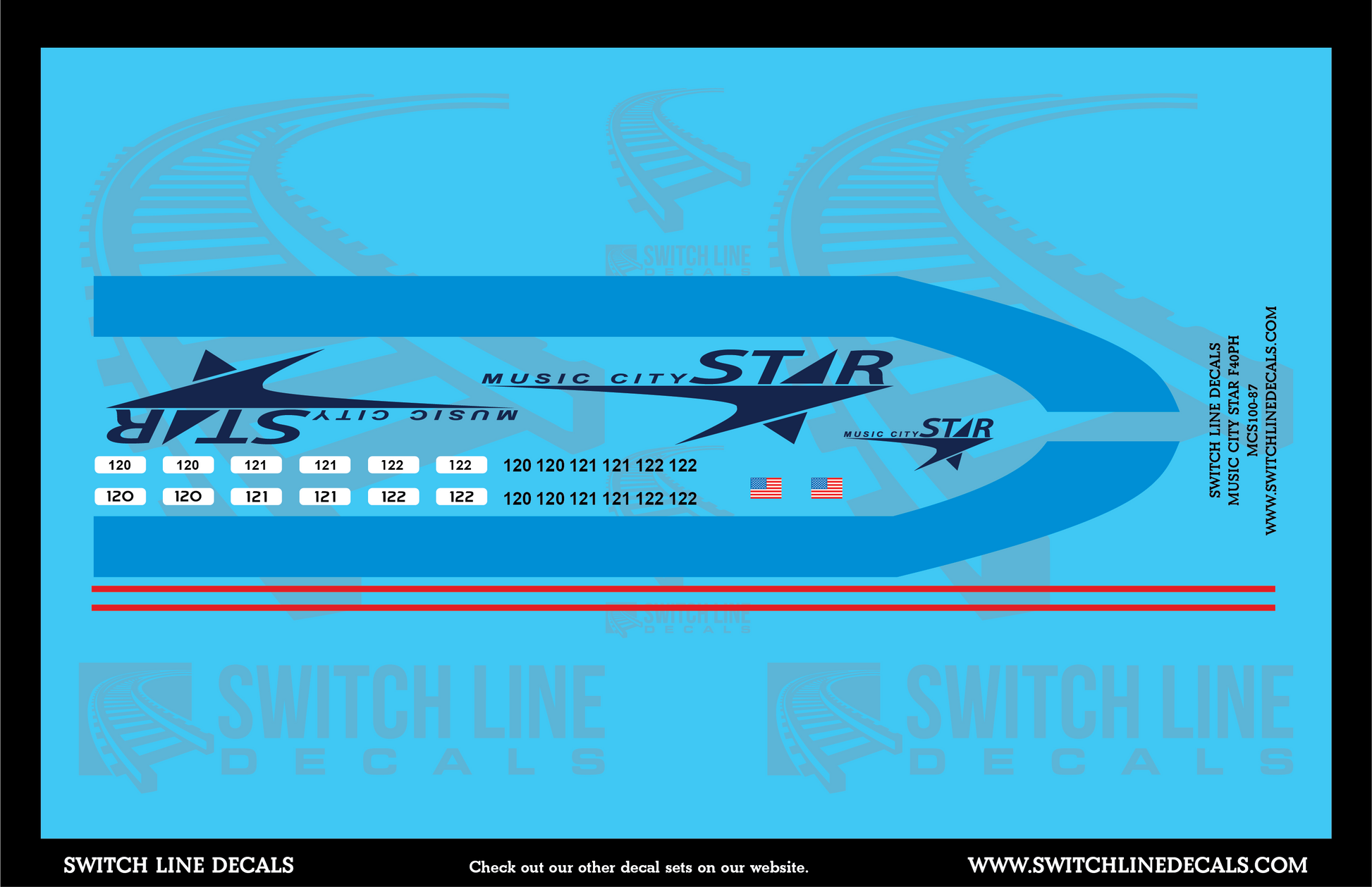 HO Scale Music City Star F40PH Locomotive Decal Set