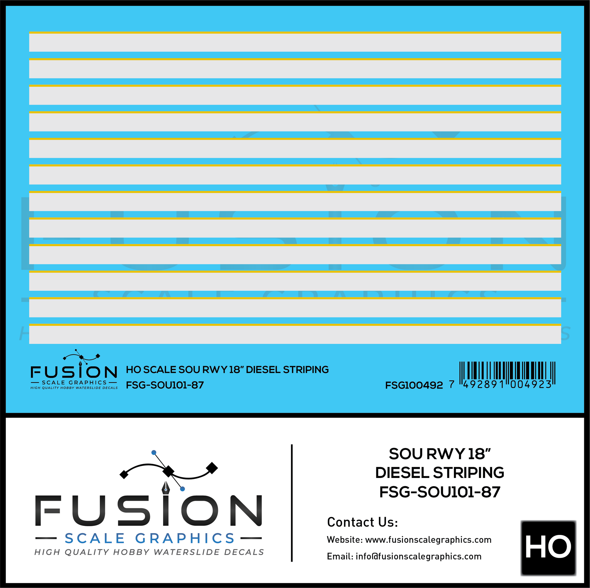 Set to be applied to Southern Railway road diesels with 18" stripes.