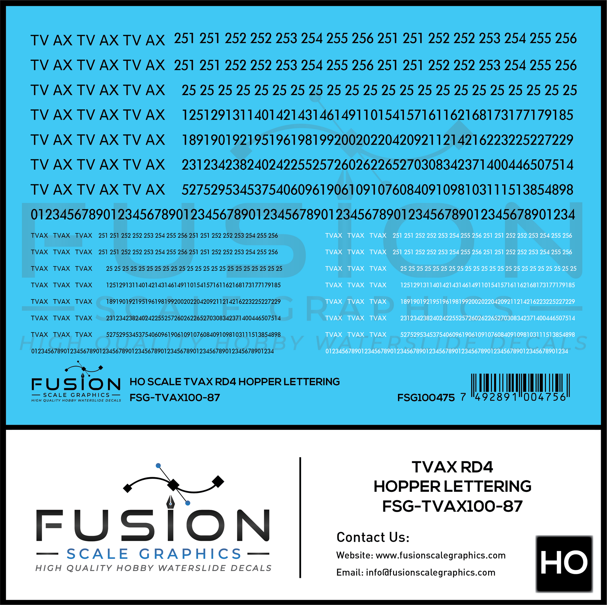 HO Scale TVAX RD4 Coal Hoppers Lettering Decal Set