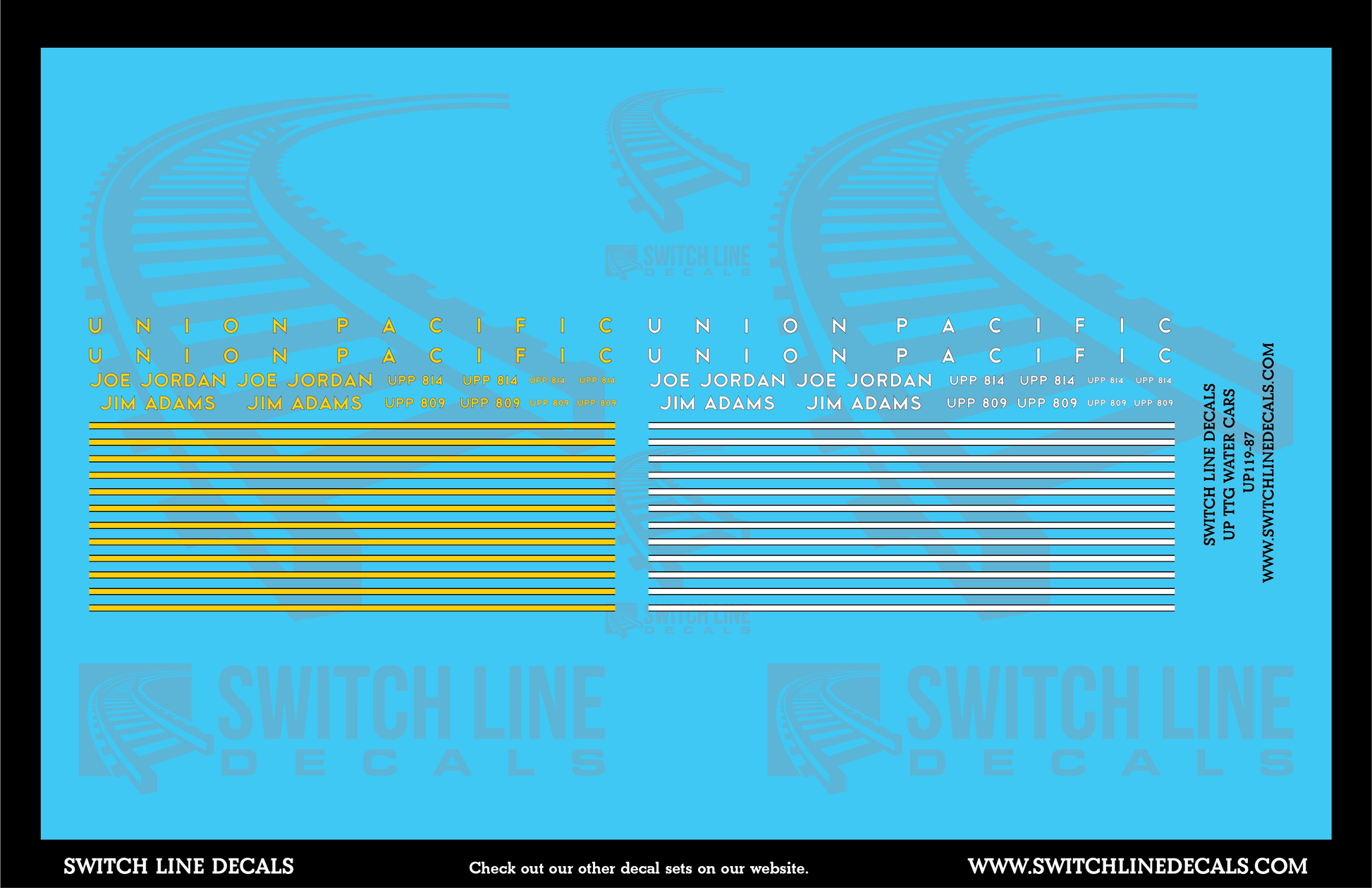 HO Scale Union Pacific TTG Water Cars Decal Set