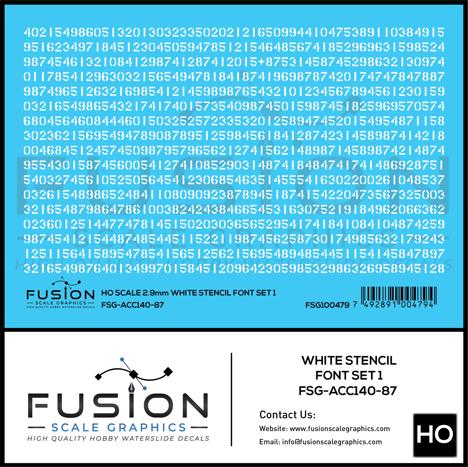 HO Scale White Stencil Numbers Font 1 2.9mm Tall Decal Set
