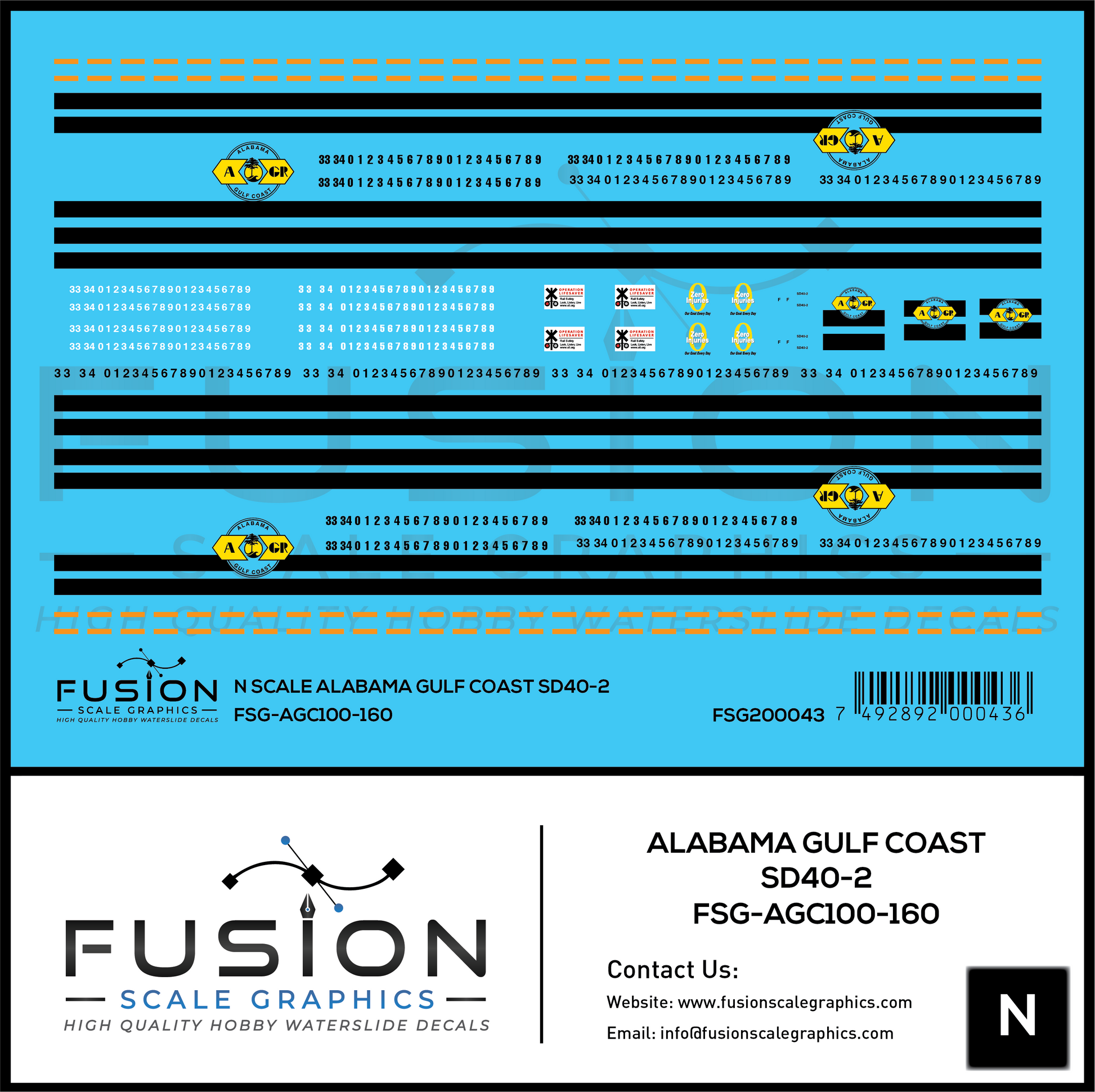 N Scale Alabama Gulf Coast SD40-2 Locomotive Decal Set