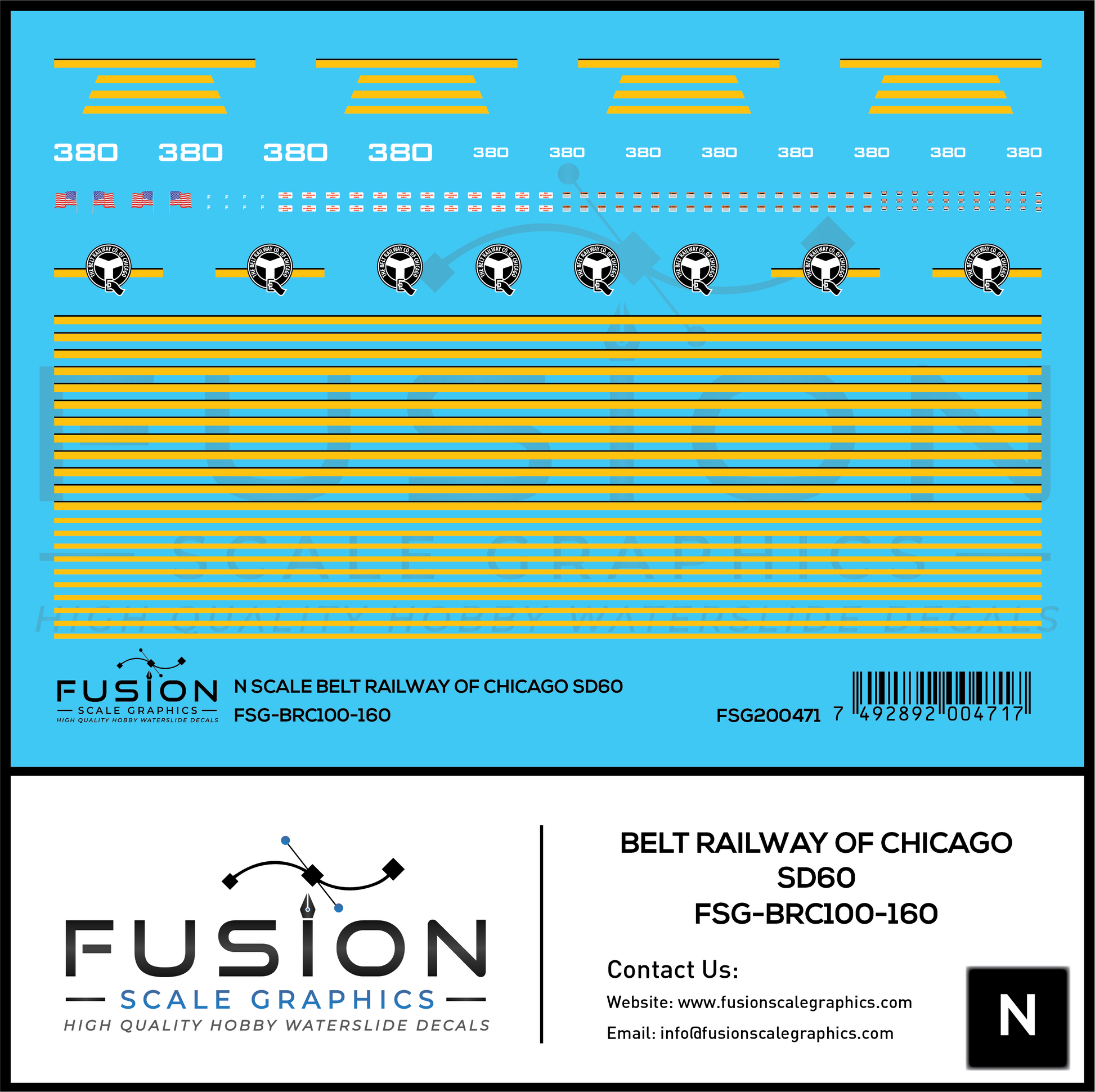 N Scale Belt Railway of Chicago SD60 380 Locomotive Decal Set