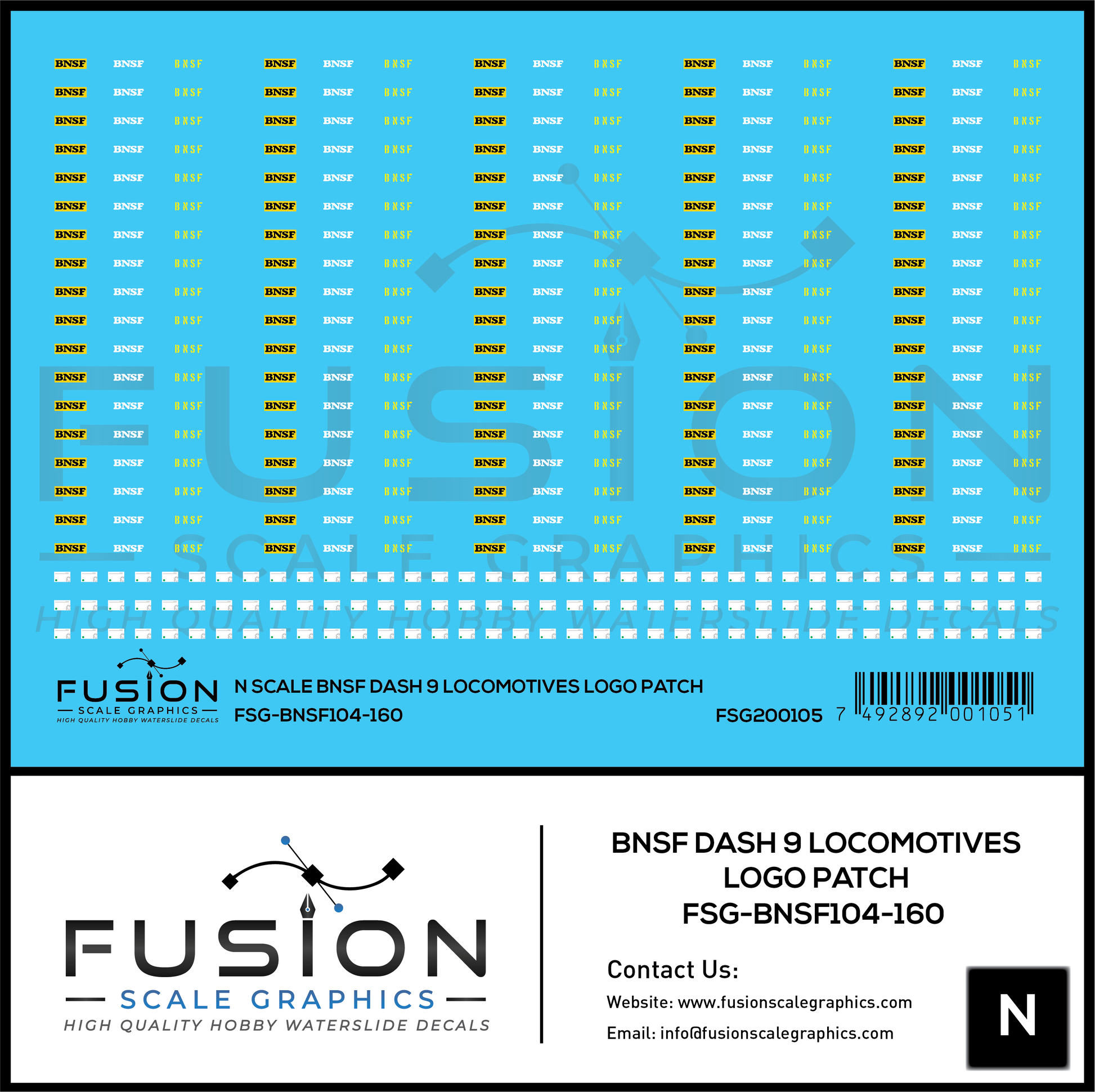 N Scale BNSF Railway Dash 9 Locomotives Logo Patches Decal Set